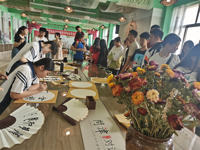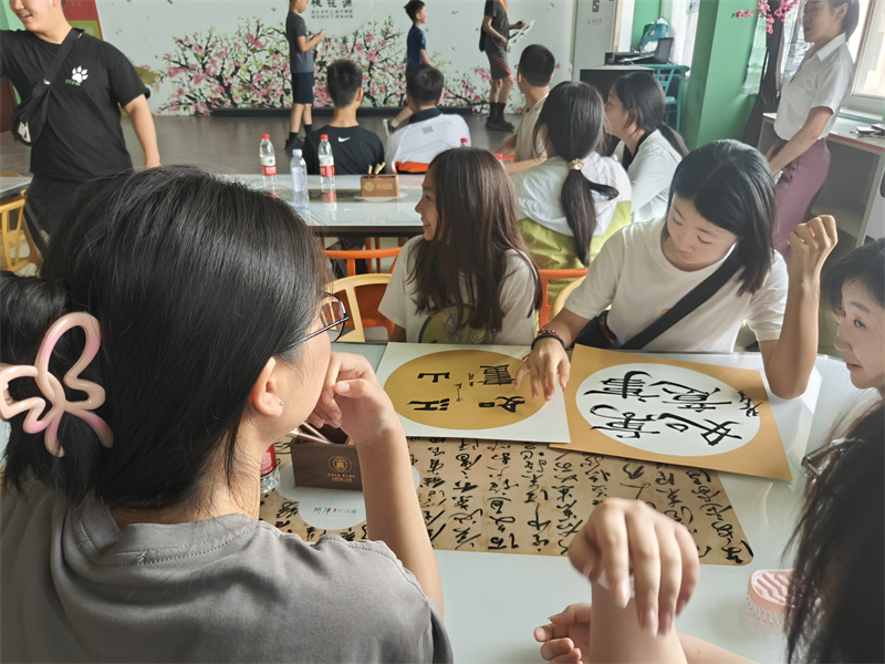 书法体验,不仅是技法的传授,更是中美两国友好文化的深刻交融。执笔蘸墨,于宣纸上勾勒出中国汉字独有的魅力。