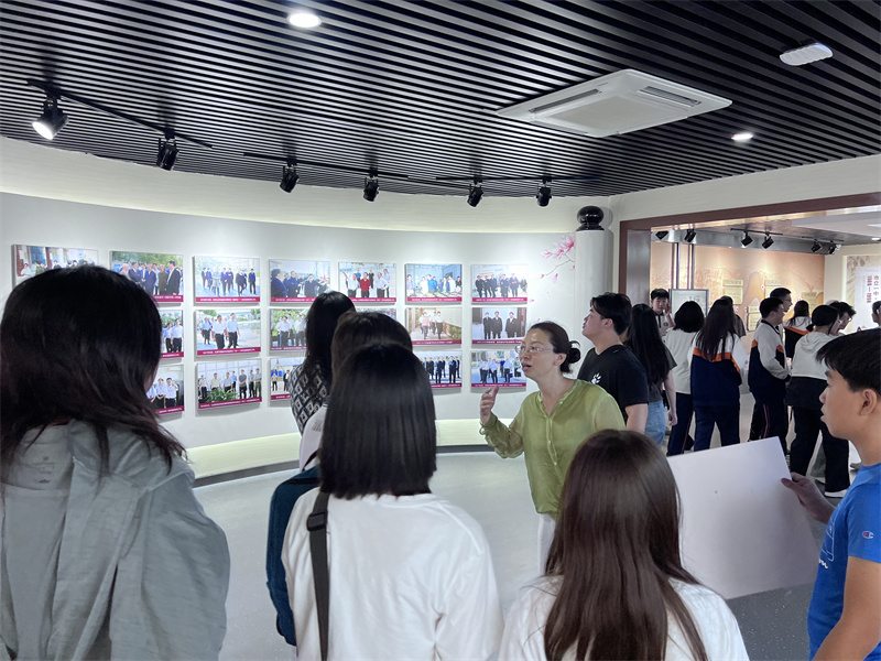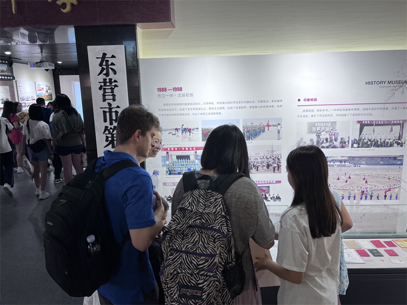在东营市一中师生的带领下,美国青少年学生参观了东营市一中的校史馆。在老师的讲解之下,外国友人对本校的校史文化有了更加深入的理解。