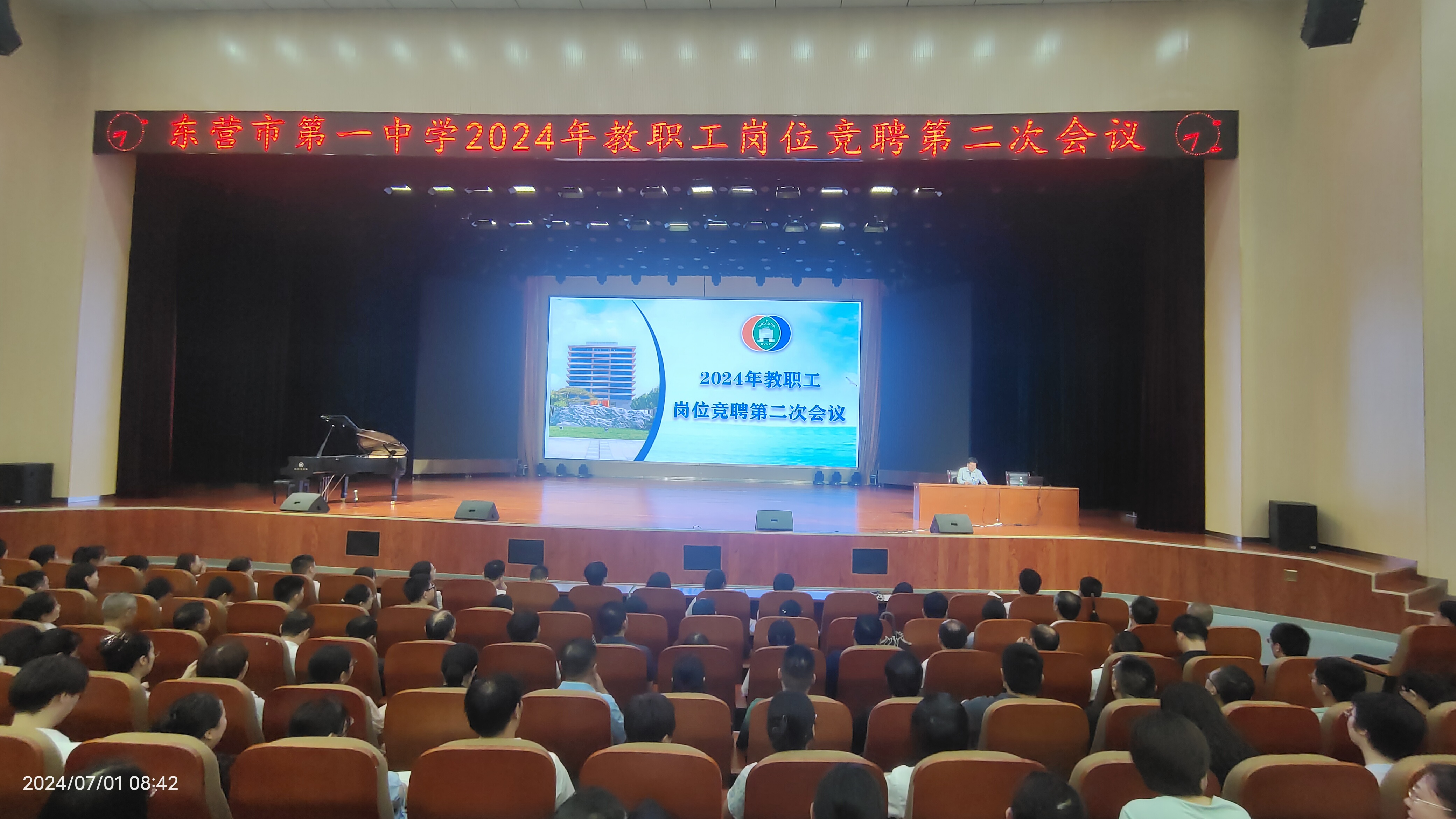 6月30日晚,市一中全体教职工竞聘上岗第一次会议在学校礼堂举行。学校党委书记、校长史本泉主持并讲话,学校领导班子、全体教职工参加了会议。