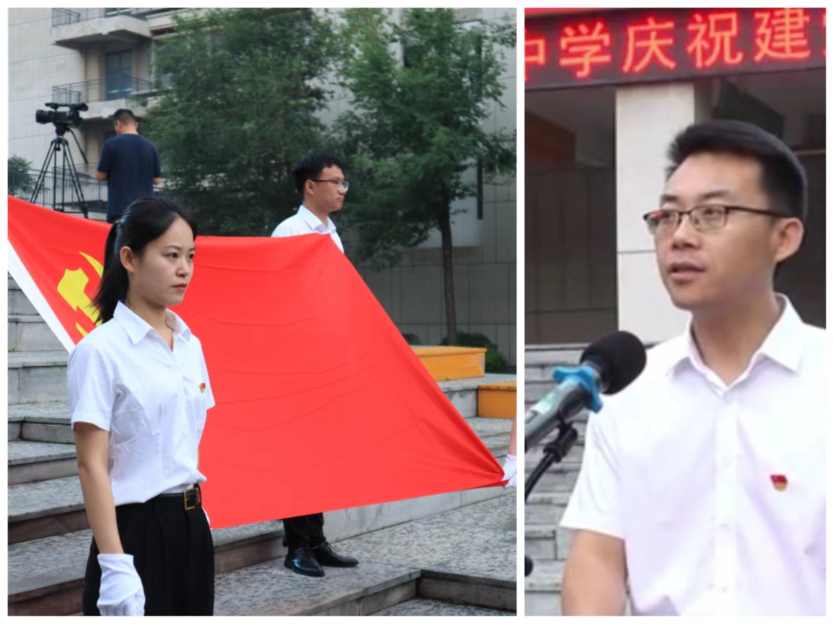 为庆祝中国共产党成立103周年,回顾党的光辉历程,讴歌党的丰功伟绩,抒发全体师生热爱党、热爱祖国的质朴情感,2024年7月1日东营市一中举行了隆重的主题活动,全体党员激情满怀重温入党誓词。活动由学校党委委员、副校长赖声平主持。