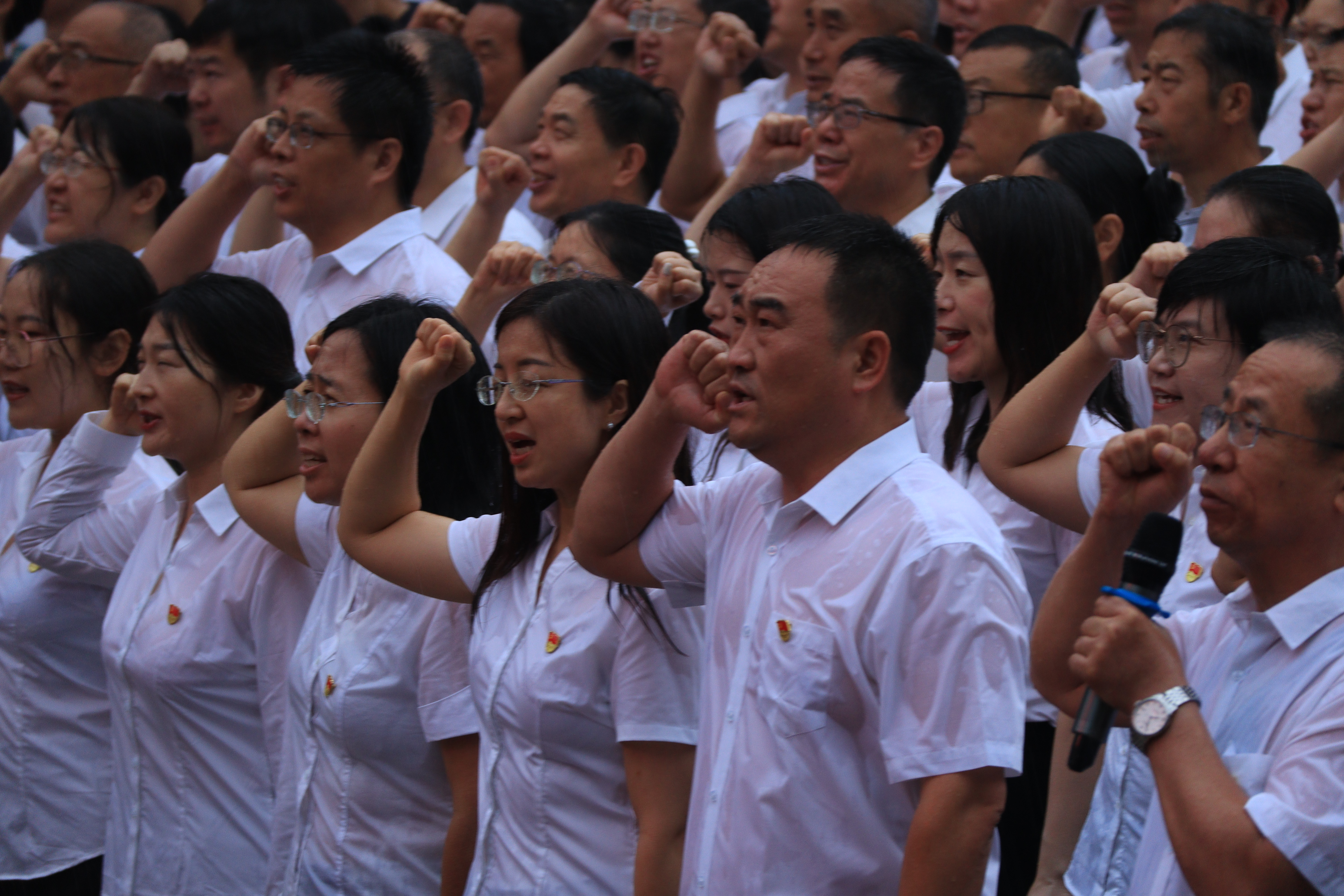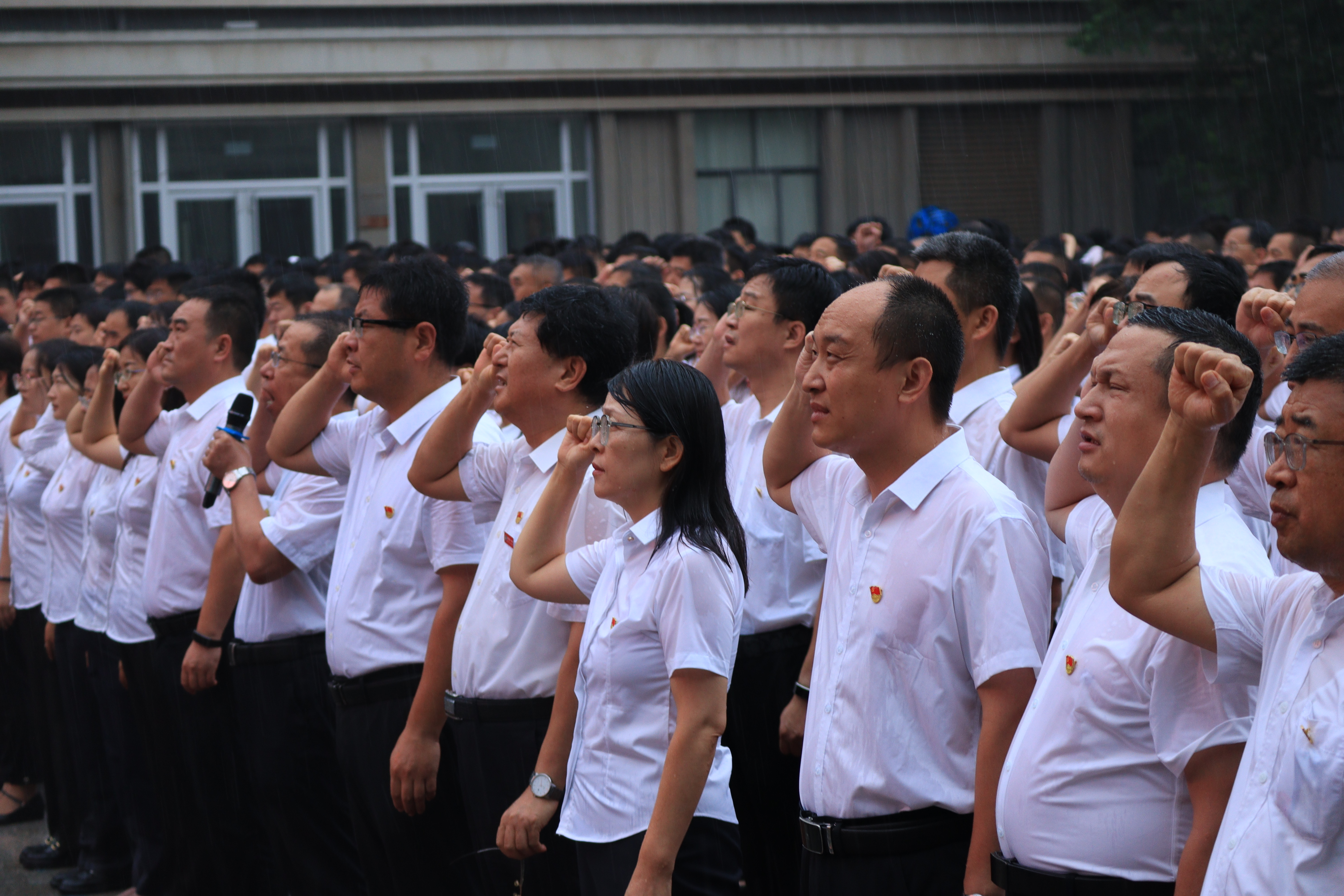 7月1日是党的103岁生日,恰逢周会升旗,又巧降喜雨。久旱逢甘霖,天公作美的巧因更加激发了全体师生为党庆生的热情,全体党员教师雨中宣誓表达了对党的忠诚。铮铮誓言、高昂气势让人心潮澎湃、激动不已。