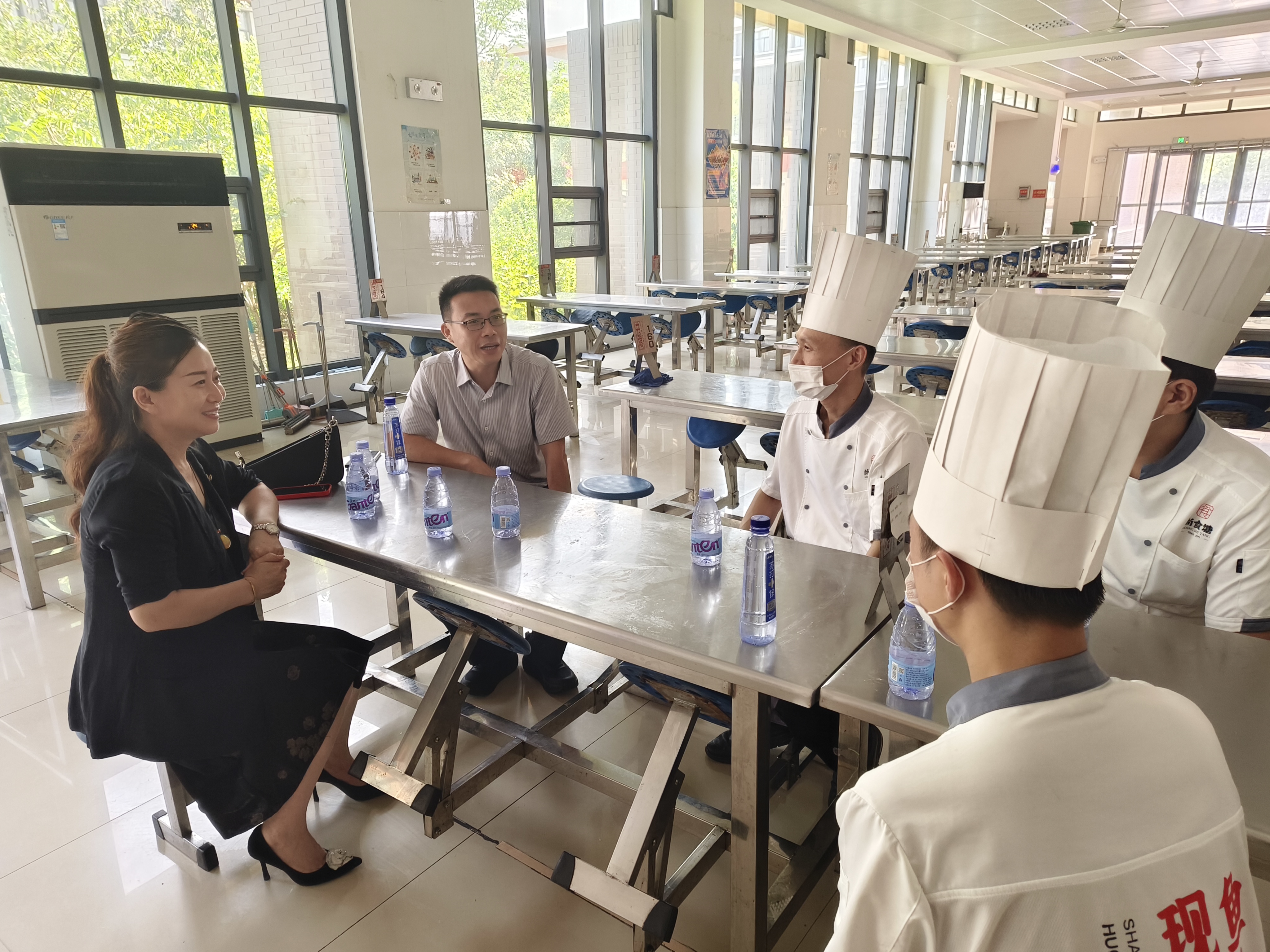 7月8日,东营市餐饮协会会员单位东营市尚食塘餐饮有限公司经理耿小青到我校交流指导。学校副校长赖声平出席交流活动。双方围绕学校食堂伙食质量保障和服务提升等方面,进行了座谈与交流。