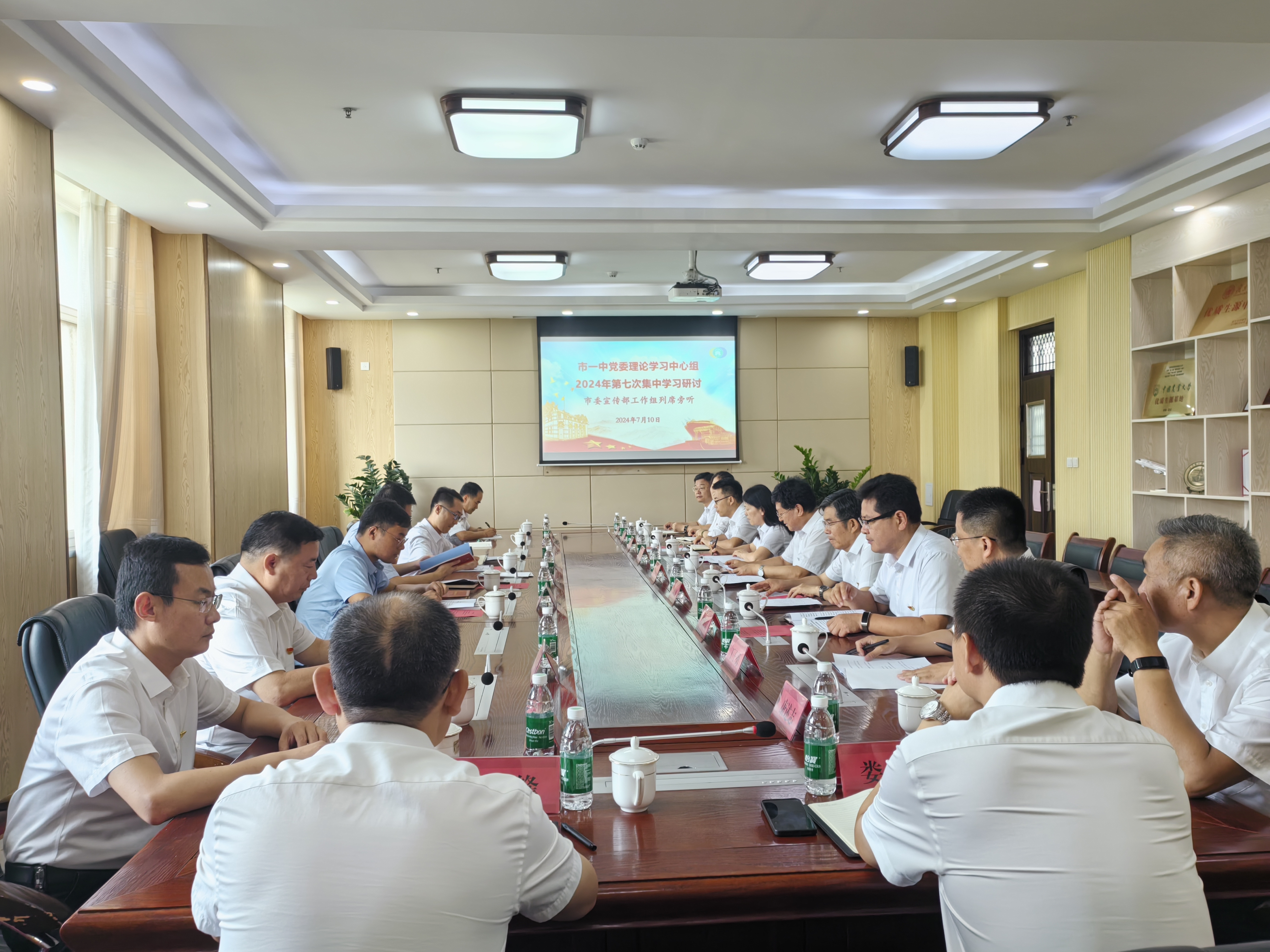 7月10日上午,在学校第一会议室,市一中组织开展党委理论学习中心组第7次集体学习研讨,市委宣传部副部长刘宪雷、理论科科长刘博、副科长赵鹏宇列席旁听并具体指导。此次学习由学校党委书记、校长史本泉主持,学校党委班子成员、中层正职参加了集体学习。
