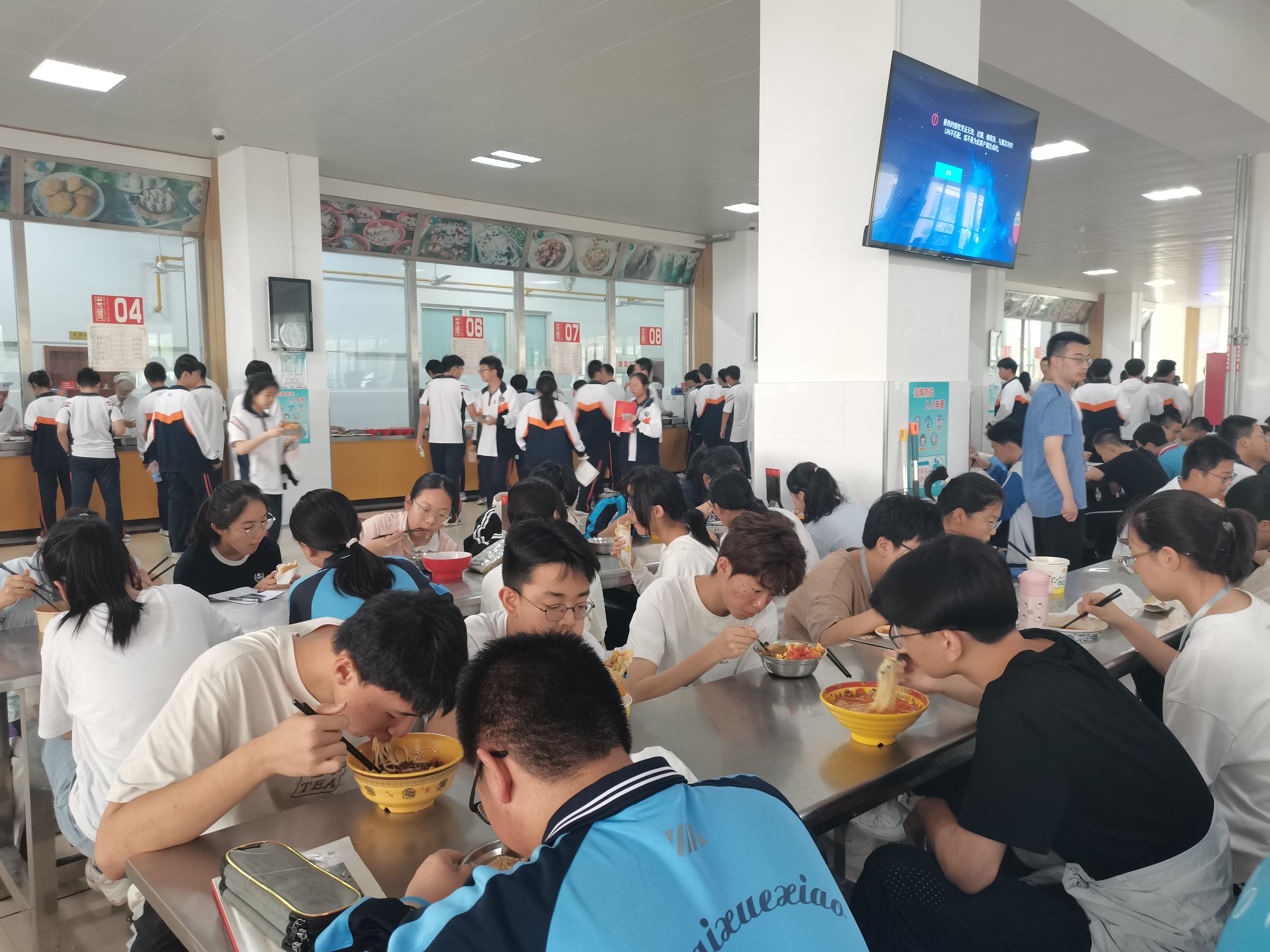 他们检查餐厅,陪伴学生共进三餐。早读结束后,新入职教师陪同学生在同一时间和地点共进三餐,以身作则,向学生明确餐厅的用餐秩序和卫生标准。