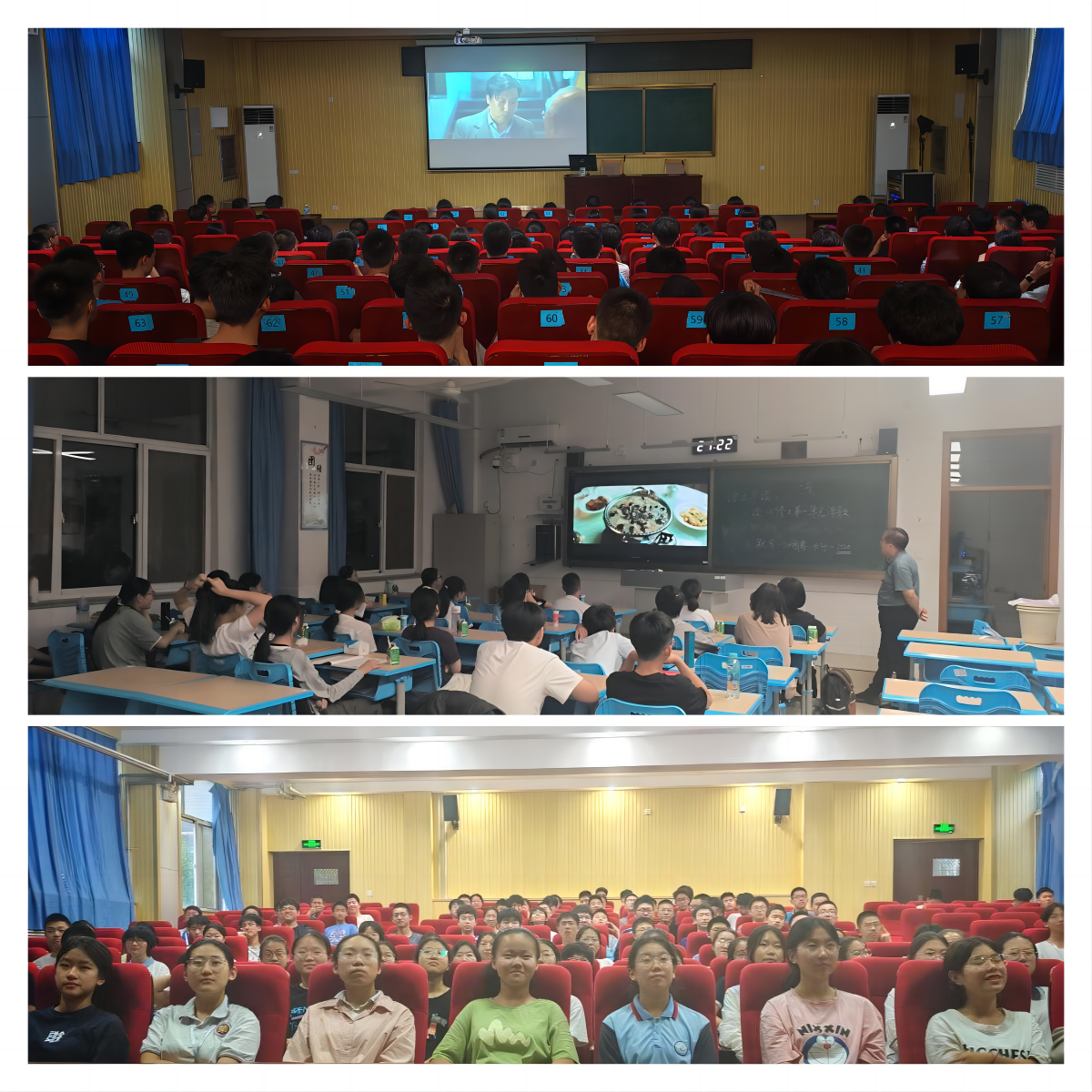 他们组织活动,帮助学生放松身心。在夏令营紧张学习之余,为了进一步丰富夏令营文化生活,提升夏令营学习的趣味性,新入职教师和夏令营学生在阶梯教室开展观影活动和演讲比赛,让学生在视觉和听觉的双重享受中放松身心,舒缓压力。