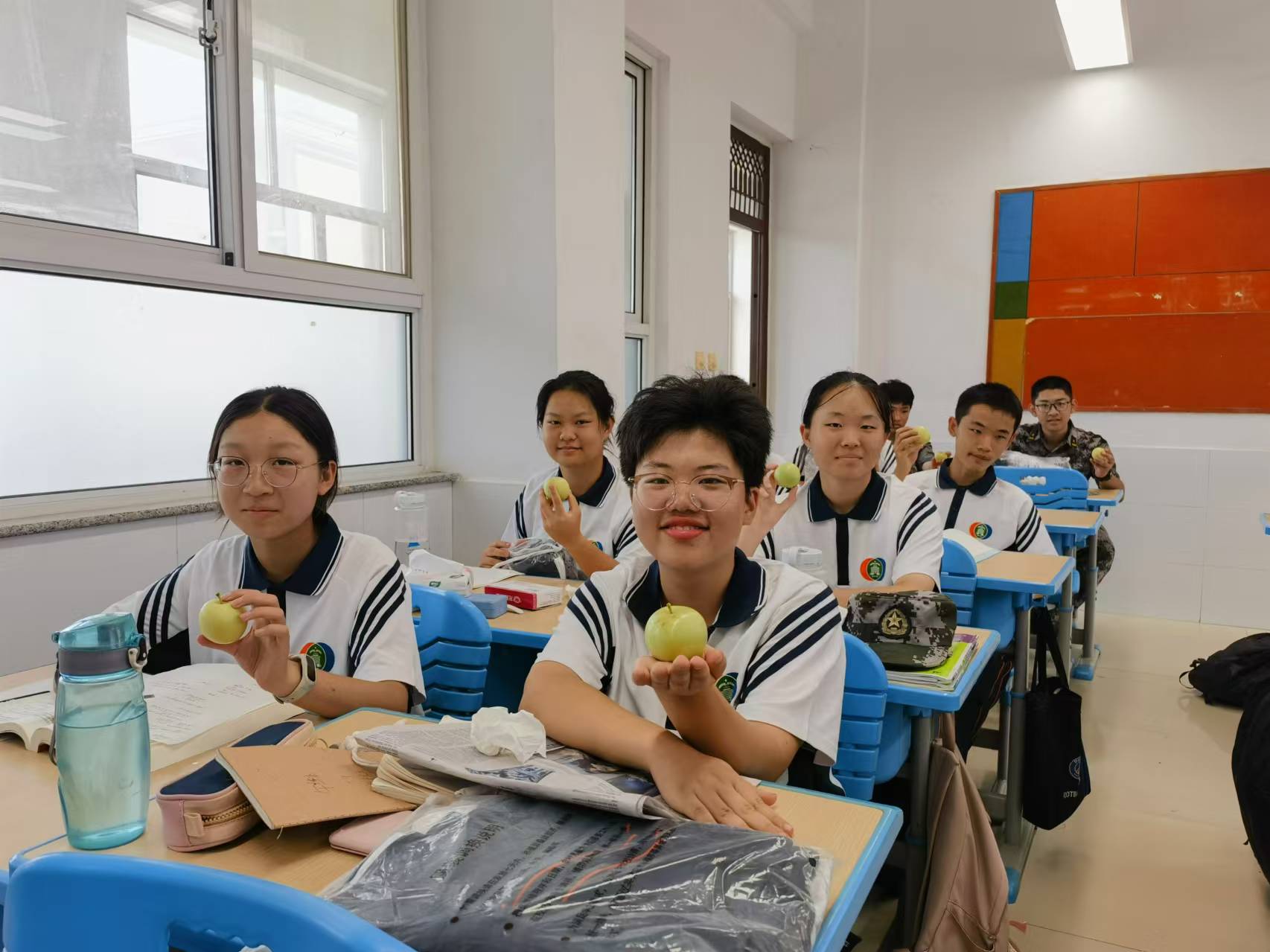 同学们美美的品尝属于一中的甜美,亲手把劳动果实送给操场上挥汗如雨的教官,送给操场、教室、餐厅、宿舍时刻陪伴的老师,送给共享阳光的伙伴们,还有保洁阿姨、门卫师傅……