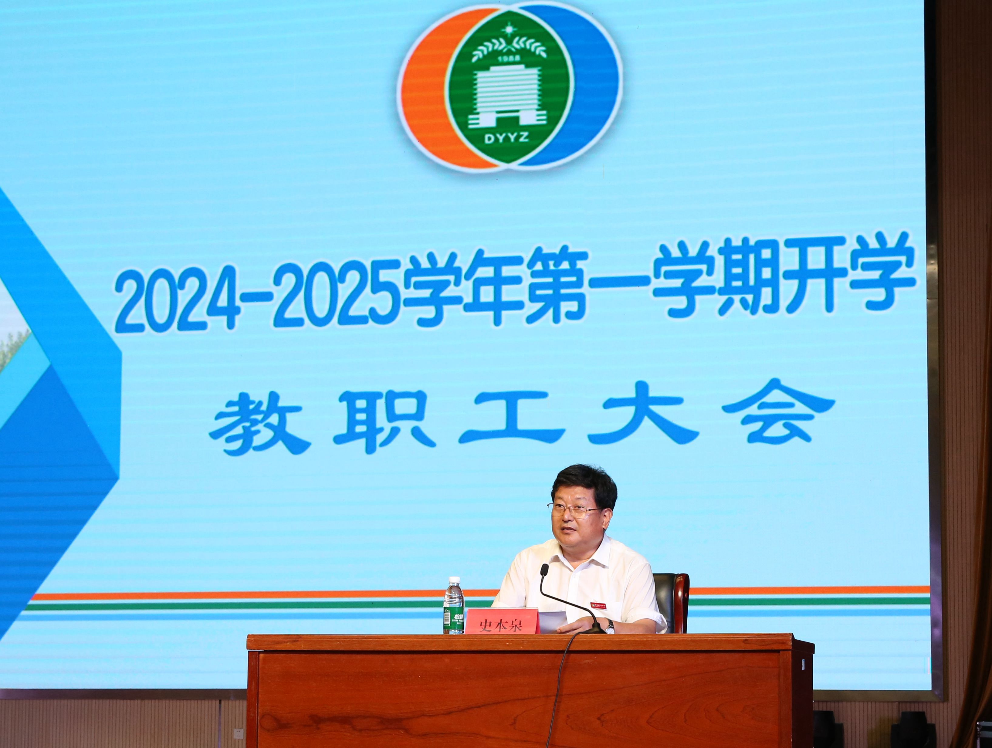 8月25日上午,市一中2024-2025学年第一学期全体教职工大会在学校礼堂举行。会议由学校党委书记、校长史本泉主持,学校领导班子、全体教职工及工勤人员参加了会议。