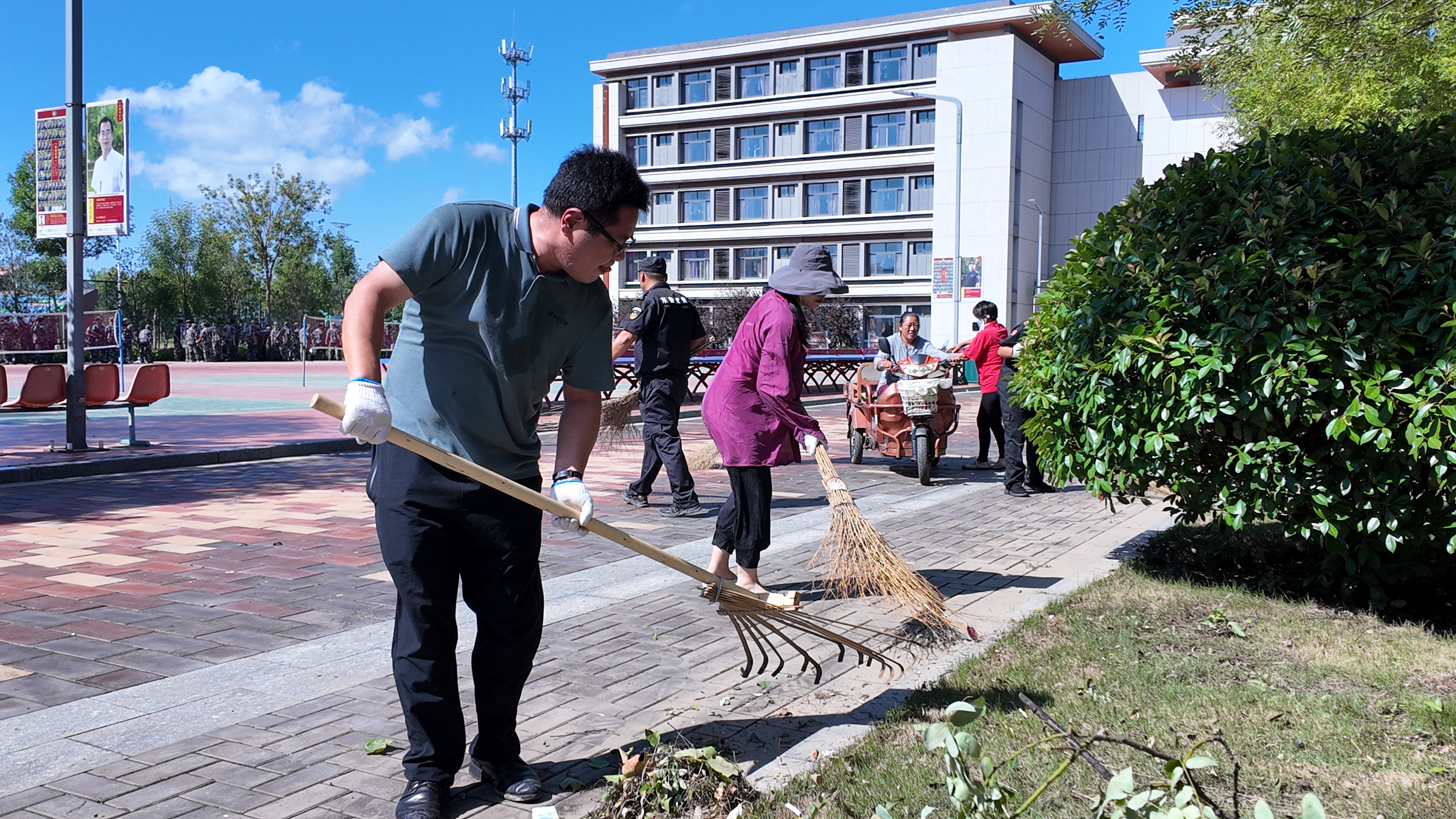 学校领导班子冲锋在前,带头实干。各级管理团队,行政、教辅、后勤、保安、保洁、超市等全体人员积极参与。在校同学也细心打扫,认真清理。真正做到全校上下齐心,团结一致,众志成城。