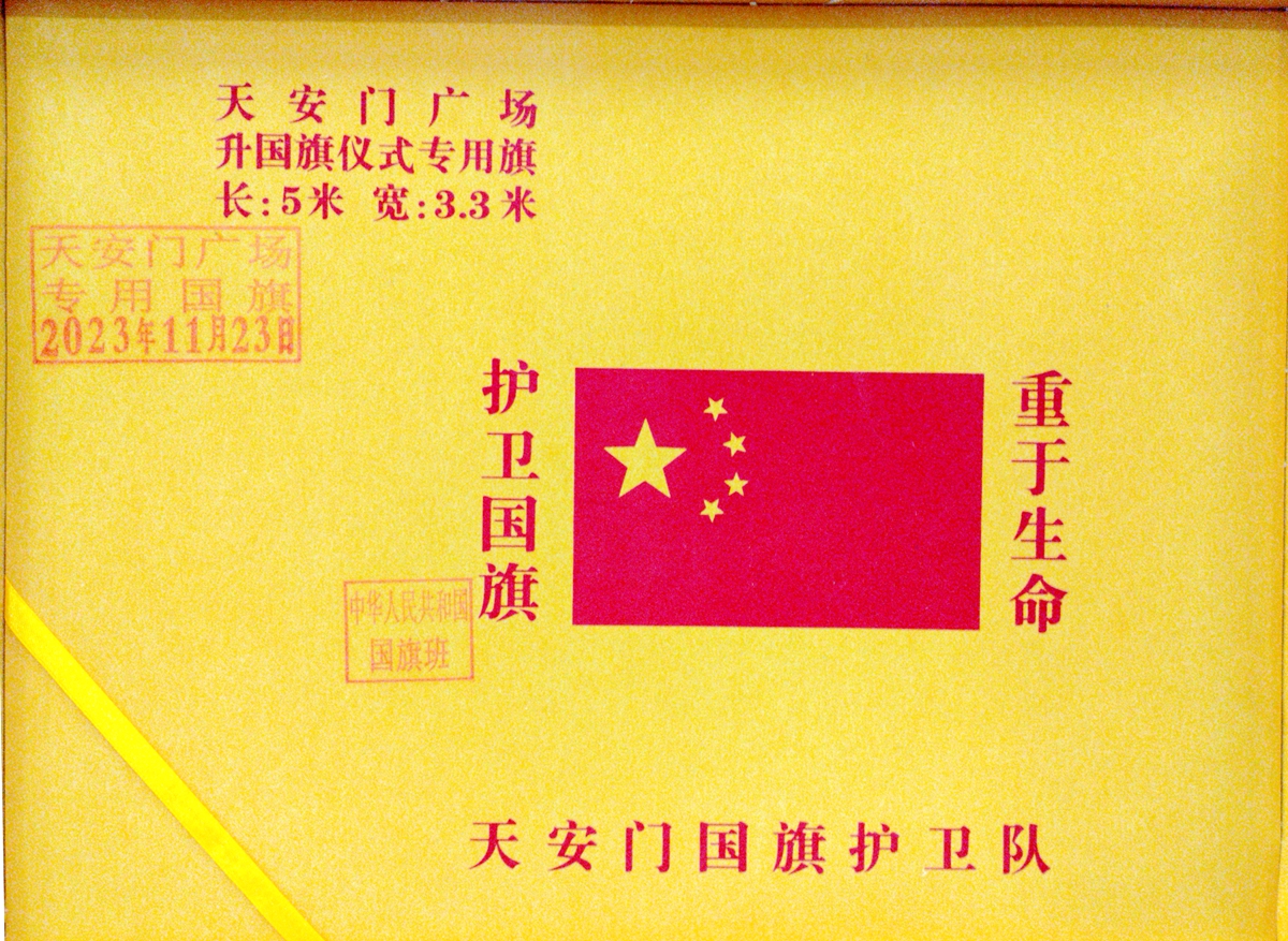 据了解,普通中小学日常升起的国旗一般长2.4米,宽1.6米。天安门广场每天升起的国旗旗长5米、宽3.3米,是全国升降国旗仪式中尺寸最大的。天安门广场的国旗都有着自己独一无二的编号,在降旗仪式后被精心叠放进旗盒中,标明日期和编号,统一收藏管理。