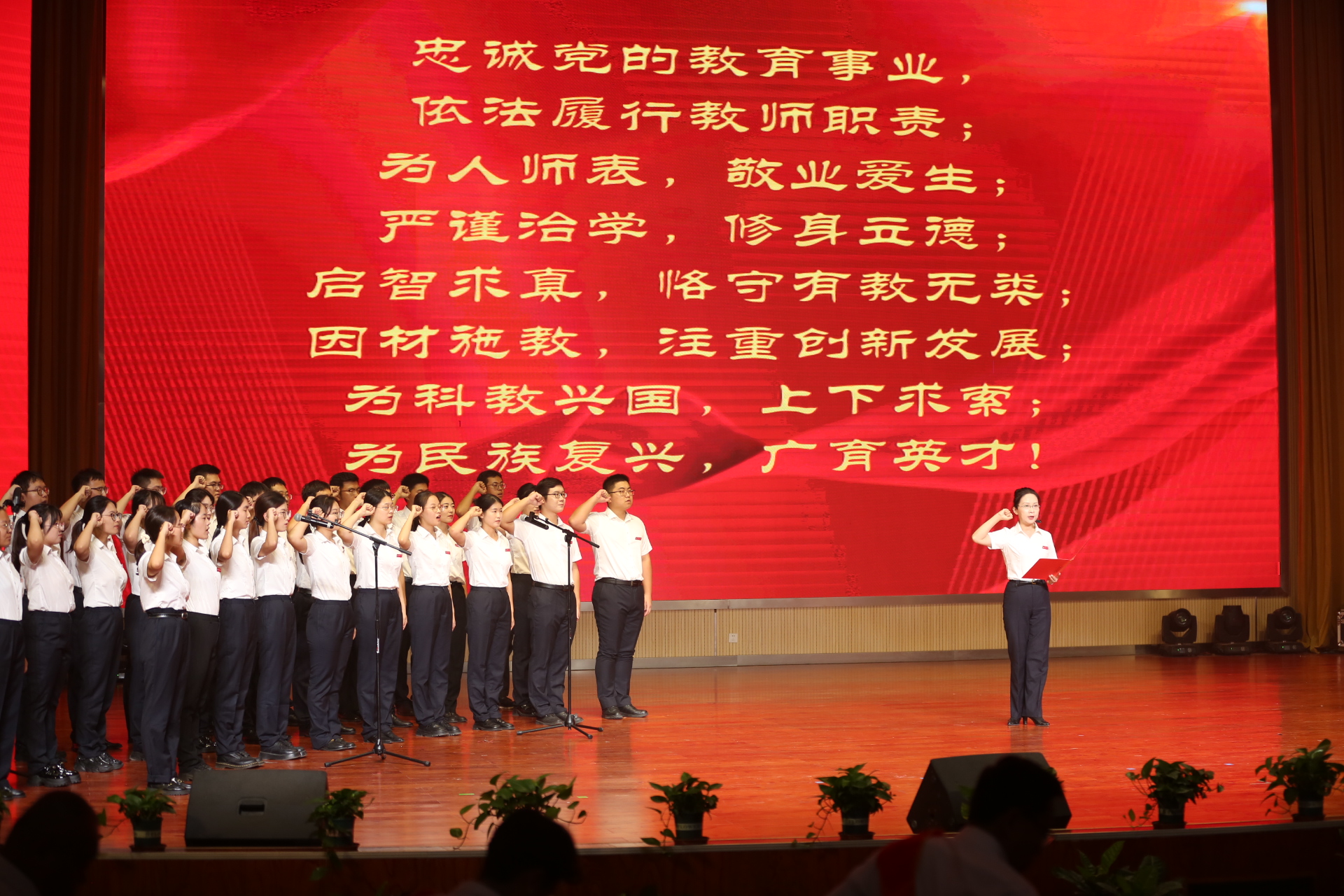 资深教师带领青年教师郑重宣誓,将自己的教育激情融入到《敬学之道》的誓言之中,誓言铿锵,初心坚定!