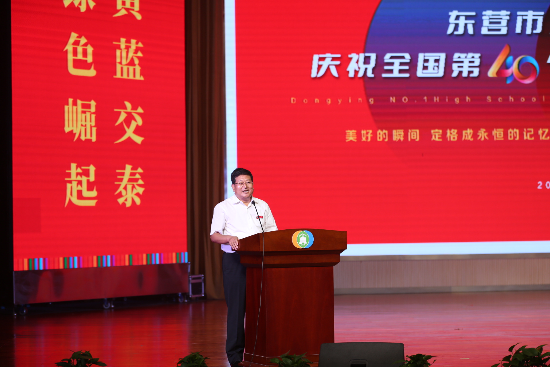 一中党委书记、校长史本泉发表热情洋溢的献词。作为山东省首届、东营市唯一的“最美政协人”,史本泉校长代表学校全体师生员工,向前来参加我校第40个教师节庆祝活动的各位领导、嘉宾、家长、教师和学生代表表示热烈的欢迎和衷心的感谢。史校长说,新的学年,我校将继续牢牢秉持“敬学”的办学理念,以一流的条件、一流的师资、一流的管理、一流的质量,统揽学校全局,引领学校发展。我们坚信,有各级领导的大力支持,有社会各界的鼎力相助,我们市一中一定能够实现“教师生活的高品位、学生发展的高素质、教育教学的高质量”!
