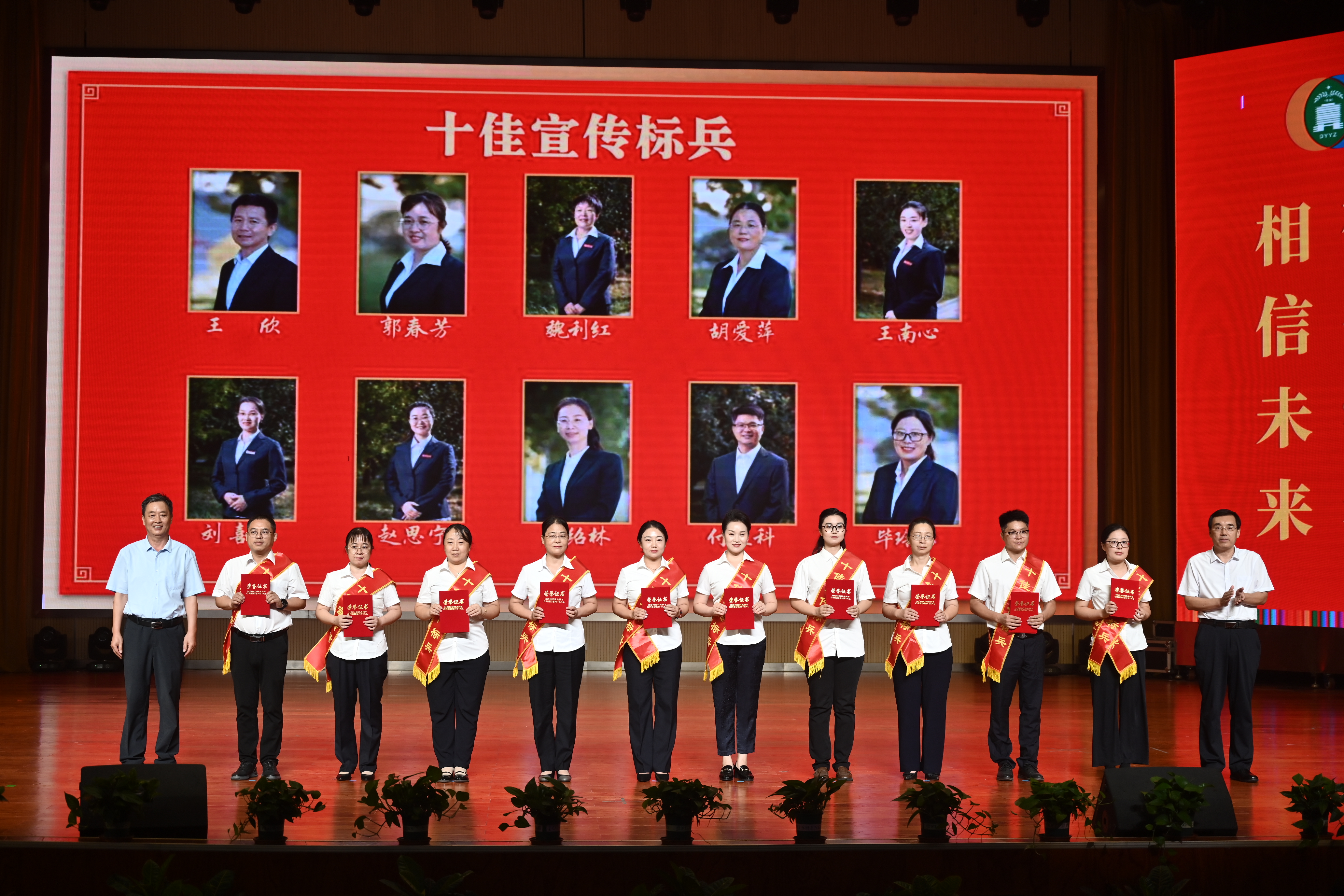 在庆祝活动现场,伴随着欢快的乐声与热烈的掌声,举行了隆重的颁奖仪式,表彰一年来为市一中各方面发展作出突出贡献的教职员工。学校领导及特邀嘉宾为受表彰的教职员工颁奖。