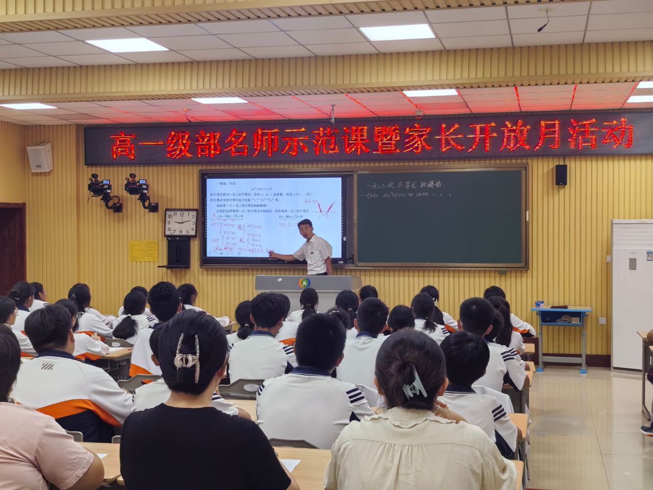 每节示范课,家长们都如约走进课堂,他们和同学们一起听课、记笔记、写感悟。一节节充满智慧的课堂吸引了家长们的目光,家长们感受到了充实高效的教学氛围,在听完课后给予了高度的评价。听完课后家长们纷纷走进餐厅、宿舍参观,他们对市一中的饭菜质量赞不绝口,对宿舍整洁统一的环境高度赞扬。本次活动不仅是一次课堂的展示、成果的检验,更是一次家校之间的情感交流和心灵对话。学校将继续以开放的姿态,积极开展家校共育活动,让家长更深入地参与孩子的教育管理过程,共同培育新时代的国家栋梁。.jpg)