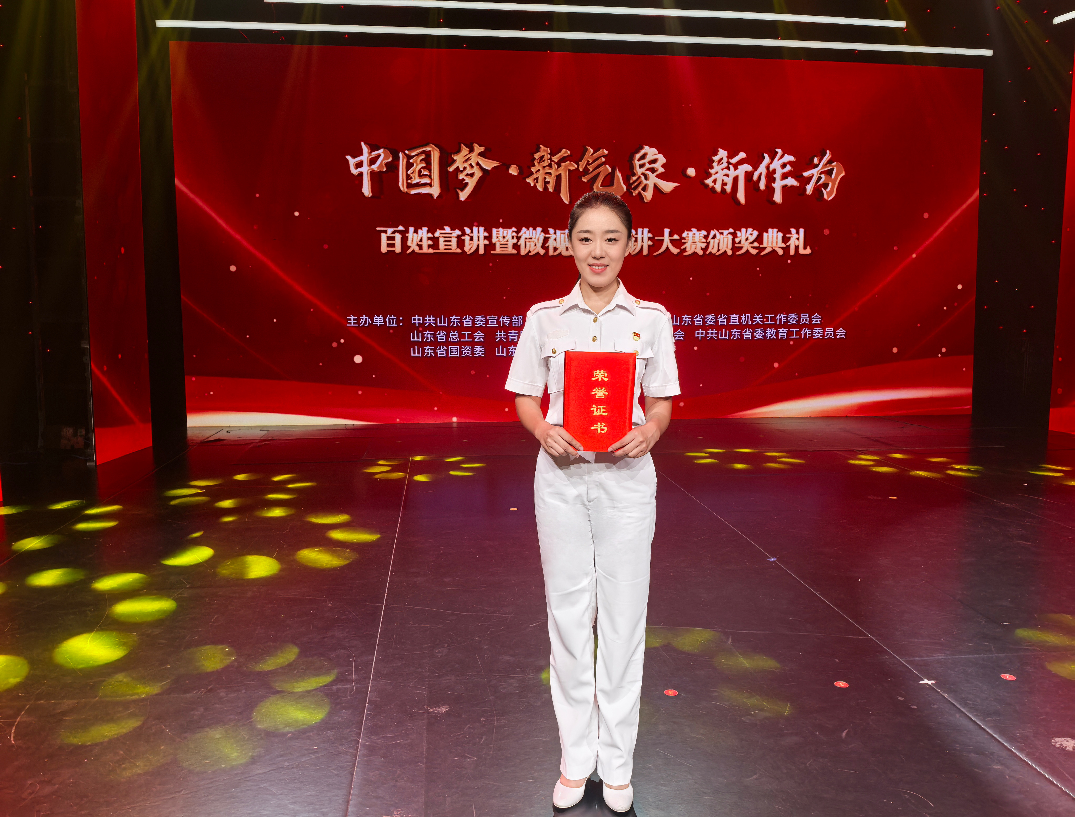 大赛共评出理论类一等奖3项、二等奖5项,曲艺类一等奖2项、二等奖4项,故事类一等奖8项、二等奖12项。经过激烈角逐,王南心老师荣获“山东省百姓宣讲大赛故事类二等奖”的好成绩,被聘为中共山东省委讲师团百姓宣讲员。