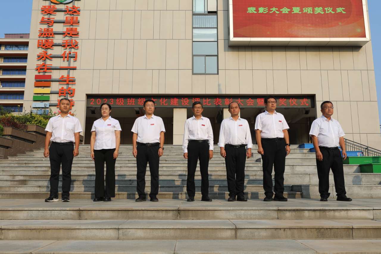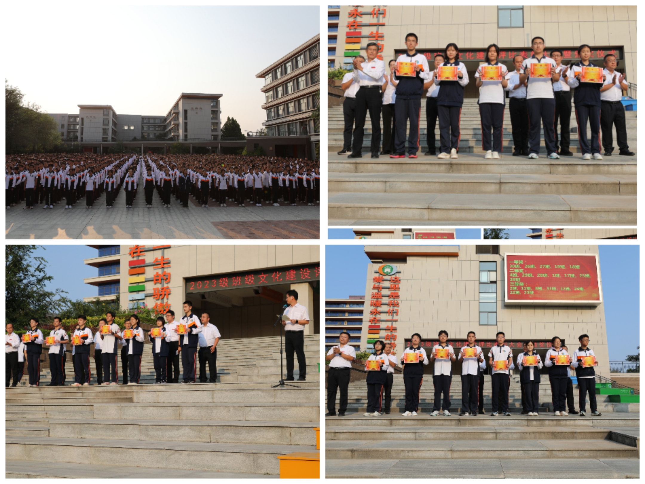 9月27日,2023级部全体师生在升旗广场举行班级文化建设评比表彰大会,刘培良主任主持会议。东营市第一中学党委副书记、副校长刘培友、学管处主任韩磊参加大会,并为在班级文化建设中脱颖而出的优秀班级颁发奖状。刘培良主任激励获奖班级“秉承这份荣誉,不忘初心,砥砺前行。继续以班级文化为引领,激发更多潜能,创造更多辉煌,共同书写属于青春的华丽篇章!”