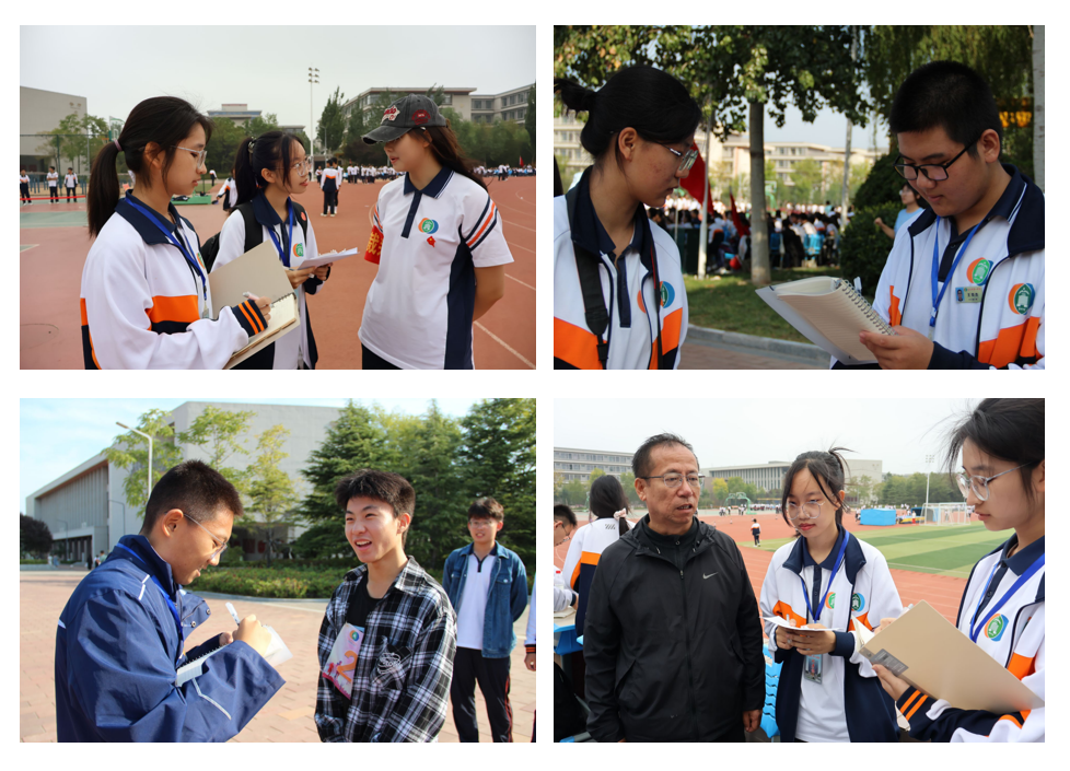 比赛期间,文学社编辑部负责加油稿审稿工作,态度认真,审阅细致,真切传达出同学们对运动健儿们的支持与鼓励。文学社记者部对运动员、在场老师、学生观众等进行采访,以“倾听真实的校园之声”为理念,做到了采访内容多样、互动良好得体,受到老师、学生的一致好评。