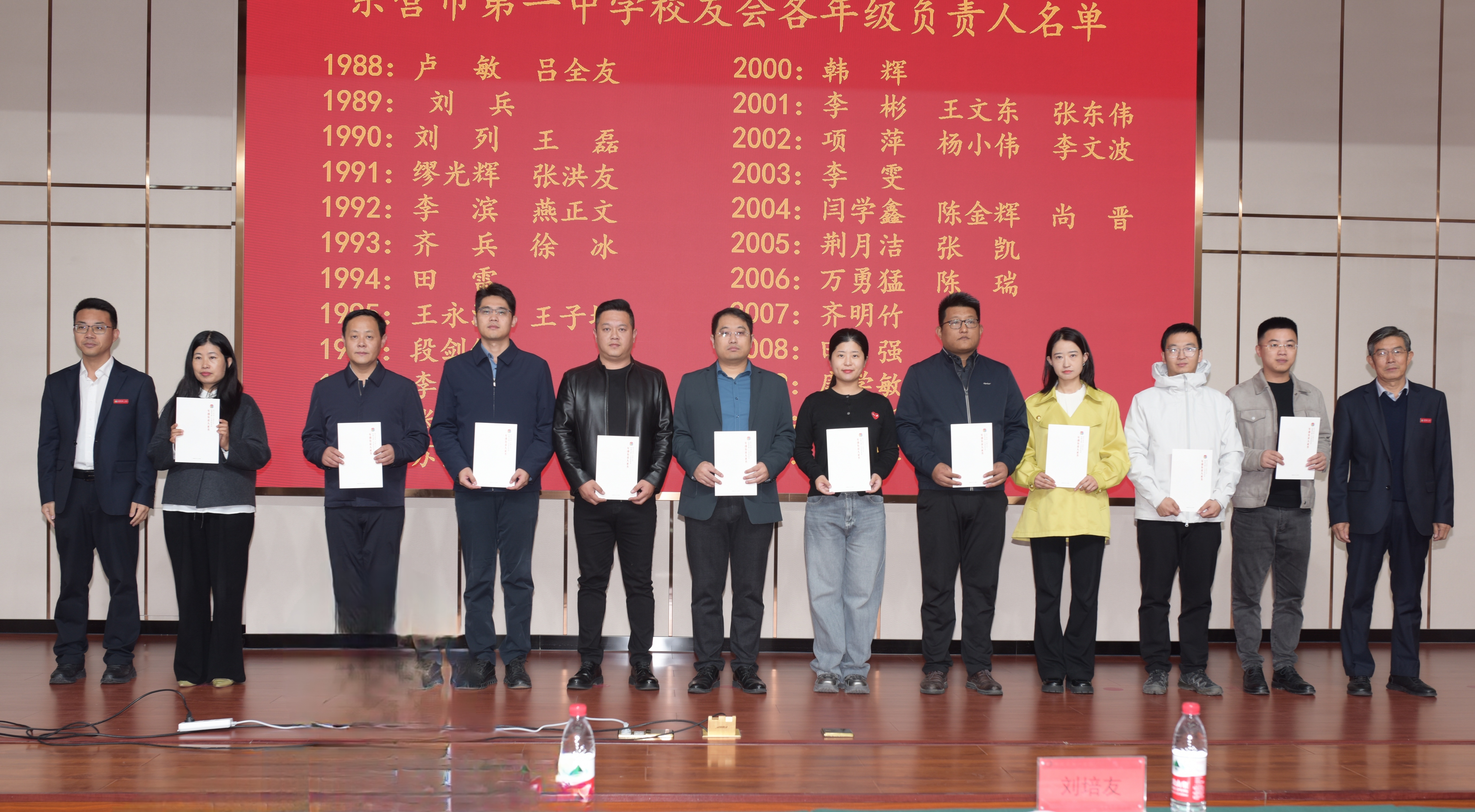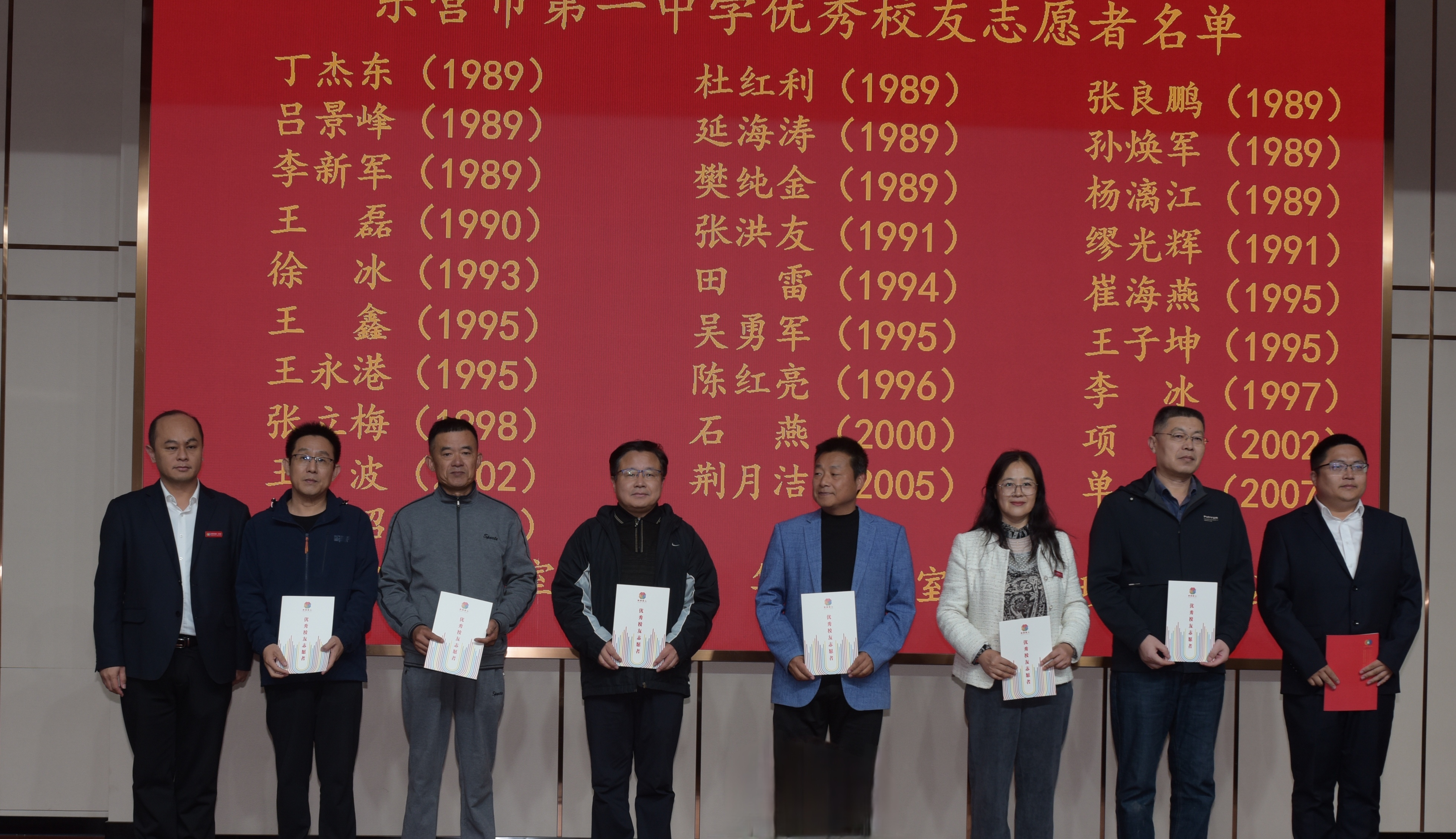 助学中心副理事长宁鲁光宣读《东营市第一中学校友会各年级负责人名单》。
