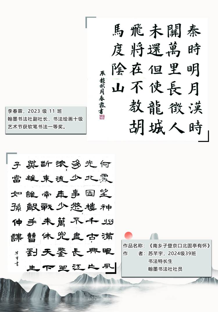 2024年10月,开启了为期两个月的翰墨书华章书法大赛。书法大赛不仅是一场竞技活动,更是一次文化交流和传承的机会。通过这样的活动,可以激发更多人对中国传统文化的兴趣和热爱,同时也能够提升校园文化的品质和内涵。社长董一平负责总体活动策划,副社长李春霖负责宣传推广。