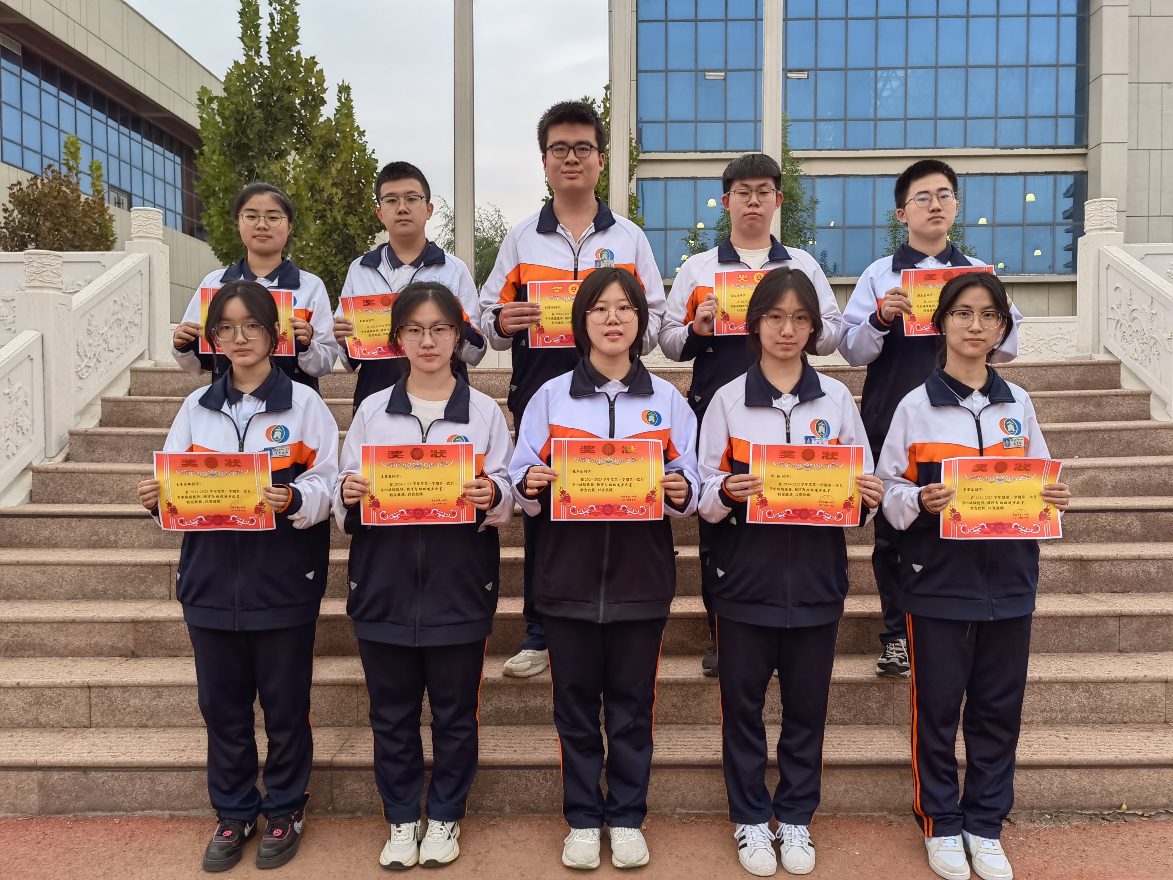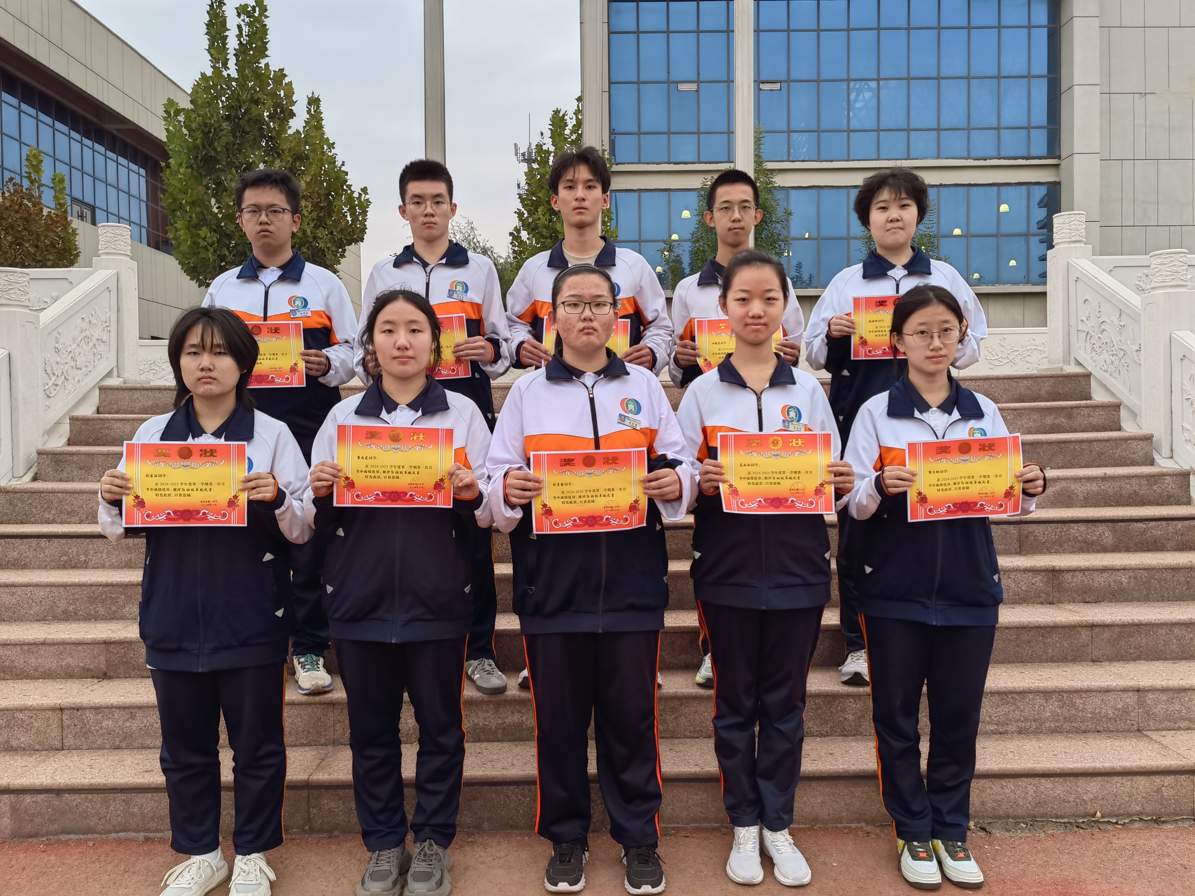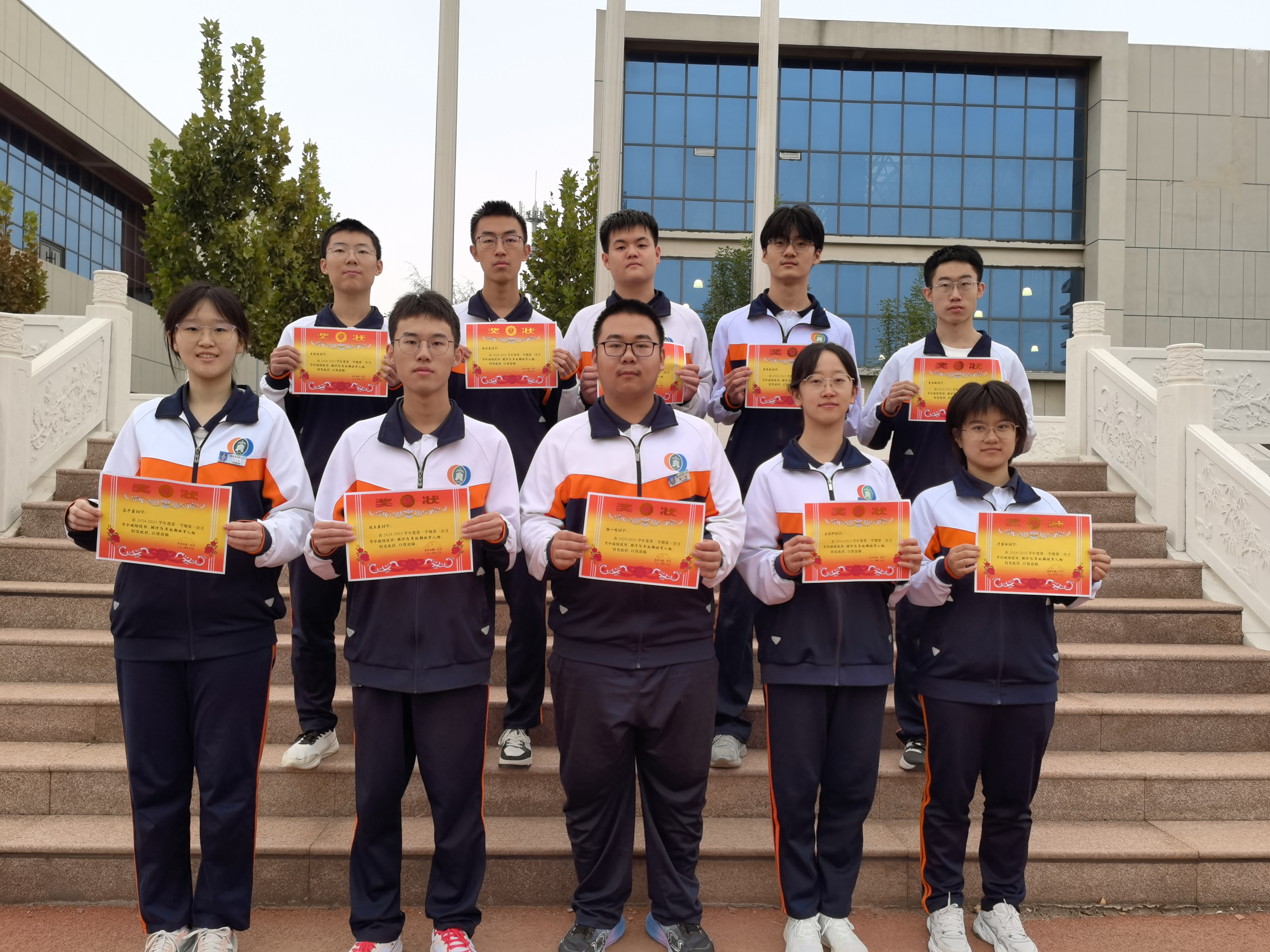 2022级师生热烈鼓掌欢迎史校长和李主任的到来。级部副主任李长国宣读表彰决定,年级领军人物、班级卓越之星、班级进步之星依次上台领奖,郑重接过属于自己的荣誉。