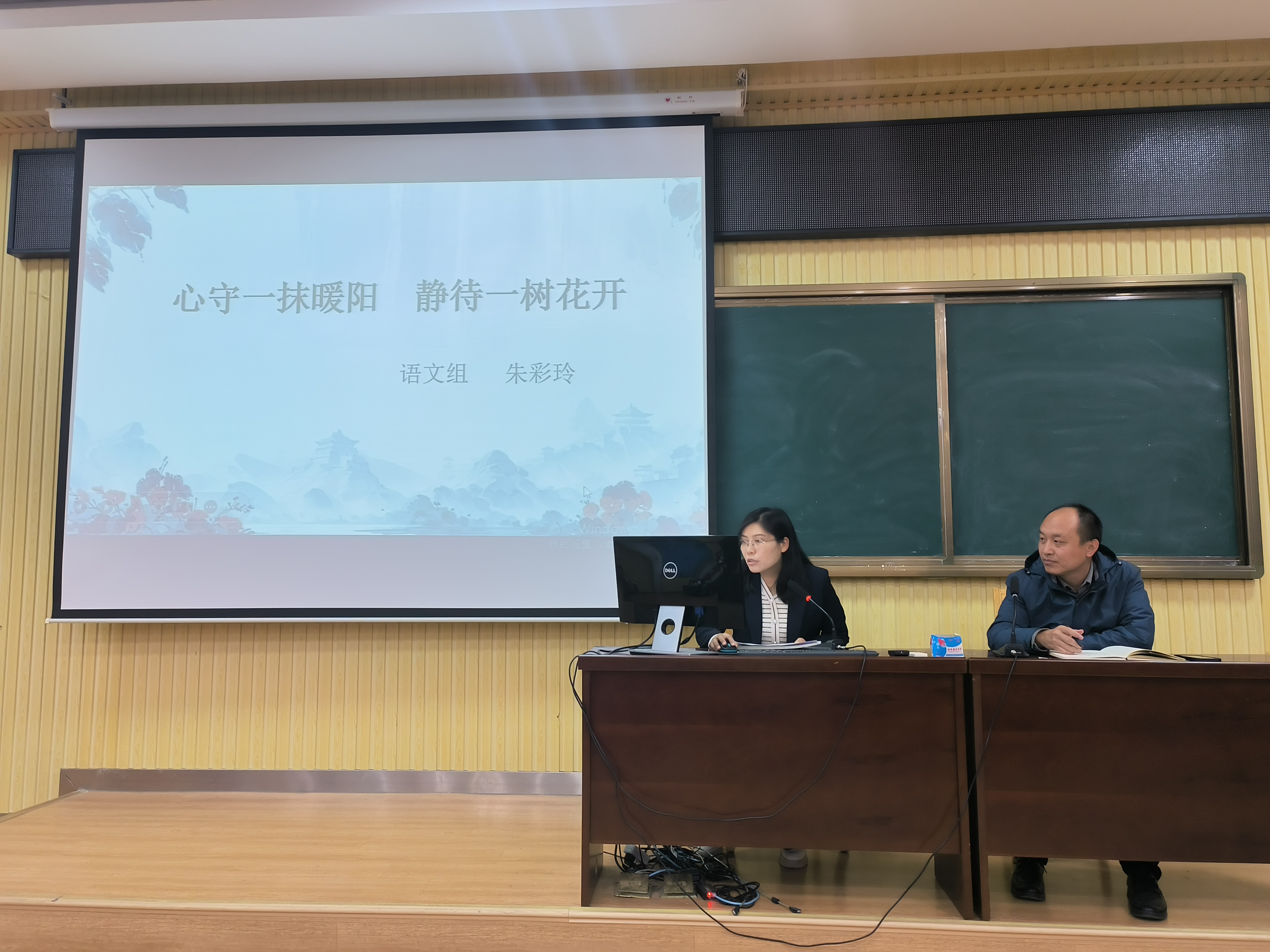 朱老师在报告中围绕着“有实干”“有思考”“能看见”三个方面分享了自己在教学方面的独特做法。从“有实干”中可以看出朱老师无论是早读、上课还是作业布置都能做到沉下心来、扑下身子真抓实干,认真细致地要求学生,一丝不苟地落实完成;从“有思考”中可以看出朱老师备课、上课都是从学生的实际情况出发设计教学问题和教学思路,不拘泥于常规,有思考、有见地。从“能看见”中可以看出朱老师是一位有爱心的老师,能够看见学生、尊重学生、关爱学生,做学生的良师益友。