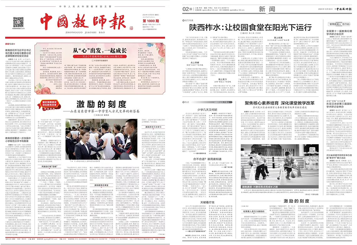 2024年10月30日,由教育部主管、中国教育报刊社主办的《中国教师报》头版以《激励的刻度》为题,重磅推介东营市一中以“激励教育”促进育人方式变革的做法及经验。