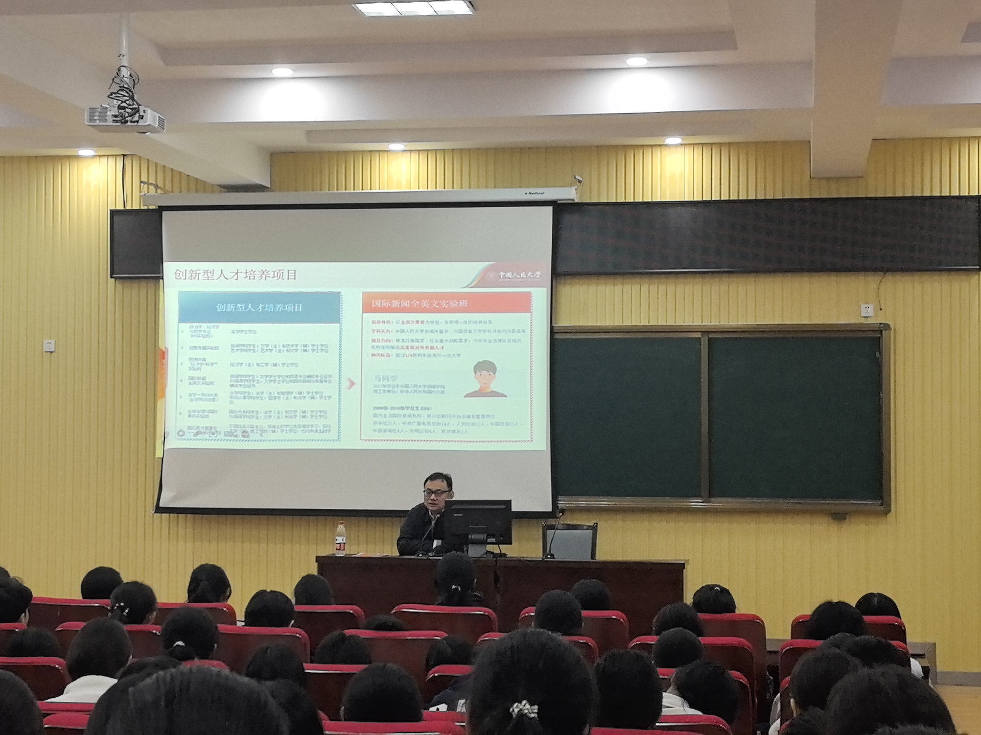 除了招生政策的介绍外,韩晓宁教授还分享了一些成功考入中国人民大学的学生的经验和建议。他鼓励学生们在备考过程中要注重全面发展,不仅要在学业上取得优异成绩,还要积极参与各类课外活动和社会实践,全面提升自己的综合素质。此次讲座不仅让我校的师生们对中国人民大学的招生政策有了更深入的了解,也为学生们提供了宝贵的参考信息。通过韩教授的详细介绍和经验分享,学生们对未来的学习和升学有了更加明确的目标和方向。