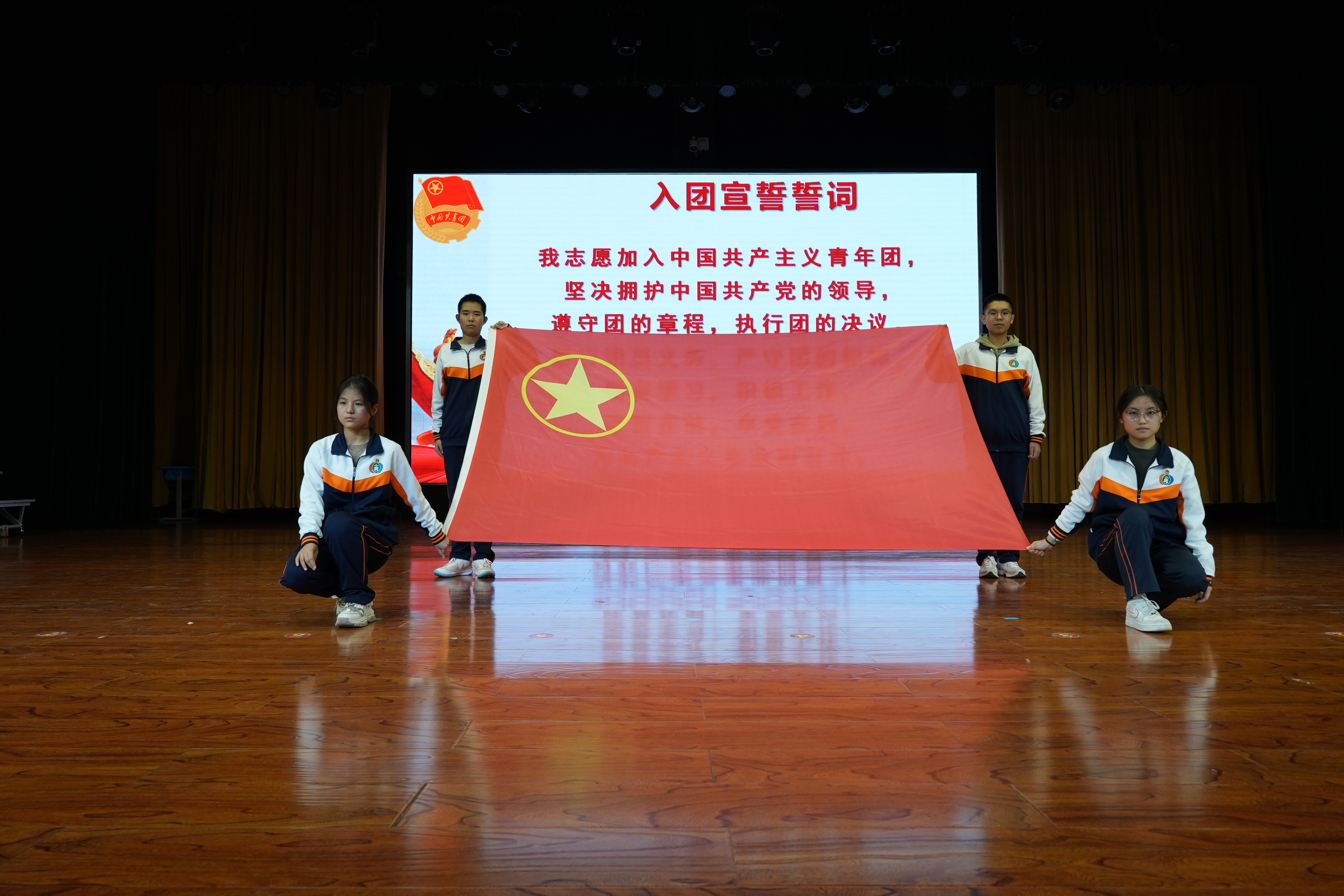 新的一批青年学生加入了中国共产主义青年团的大家庭,他们将用自己的青春誓言,为团旗增光添彩,为祖国的繁荣富强贡献自己的力量。
