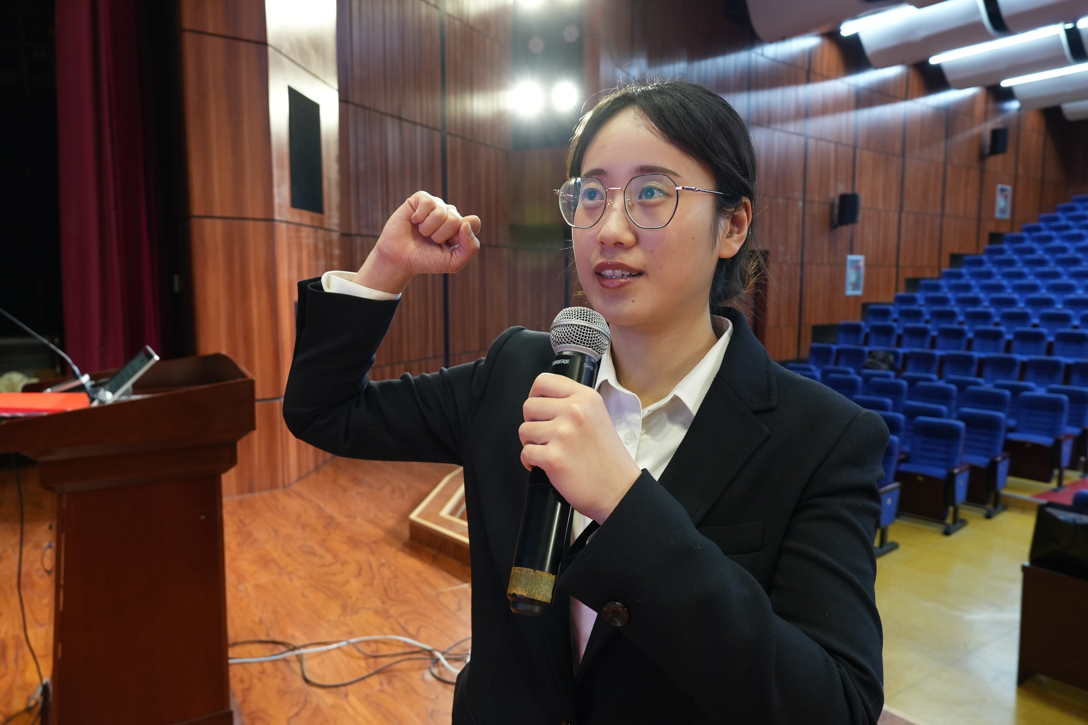 学校教工团支部副书记张丹童,带领新团员进行宣誓。