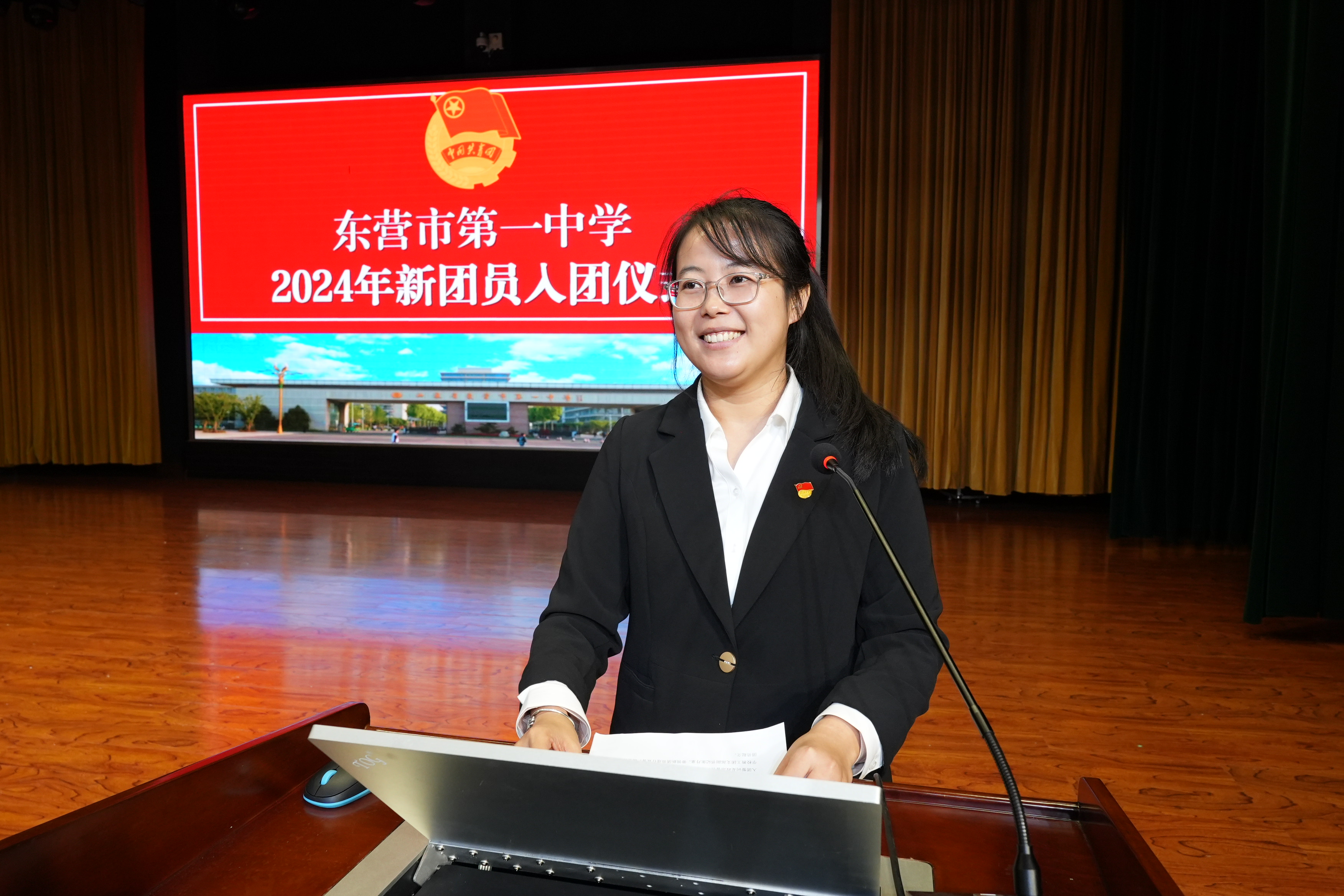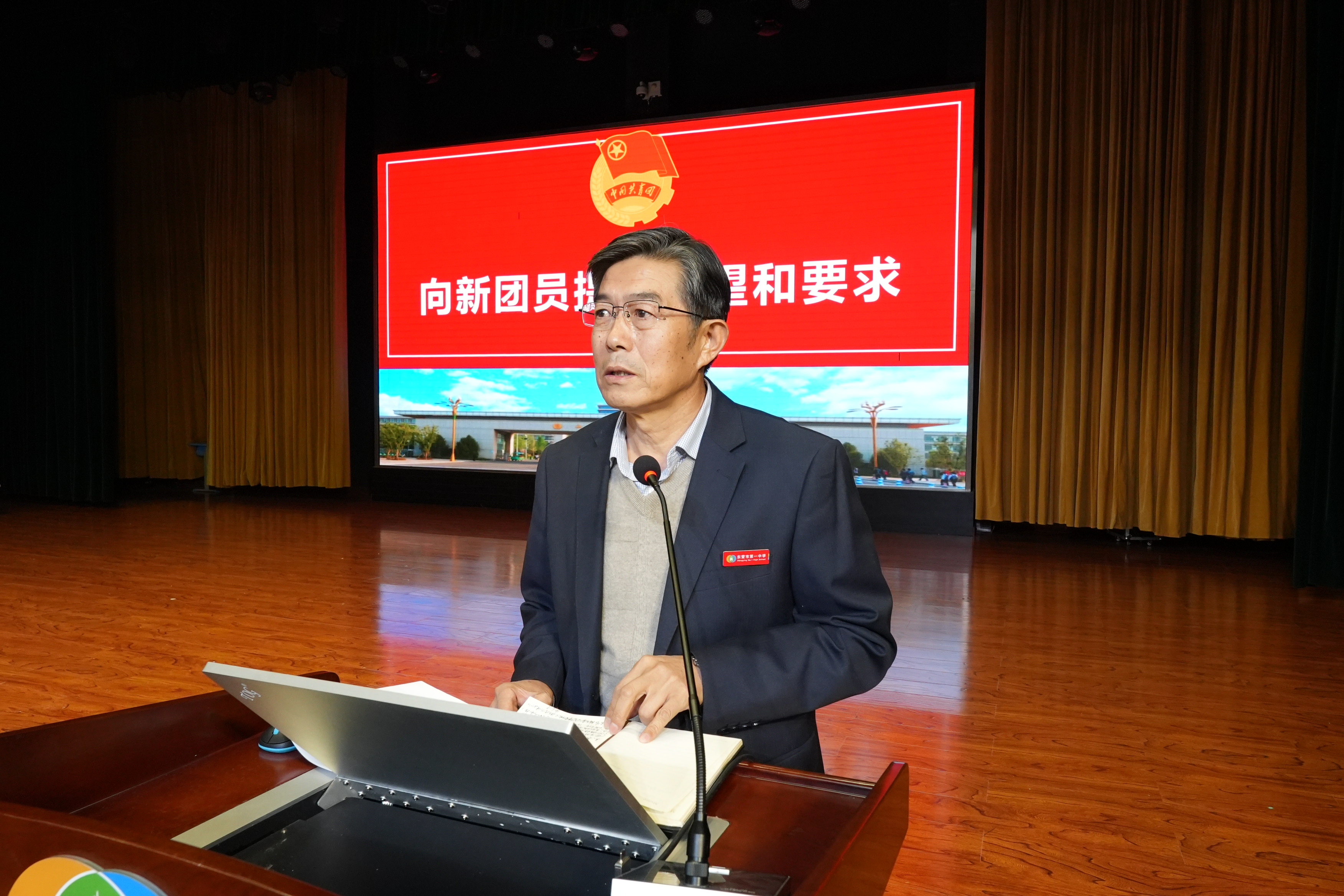 11月8日,东营市一中2024年新团员入团仪式在道德讲堂隆重举行。学校党委副书记、副校长刘培友参加活动并讲话。高一年级部副主任高长征,高二年级部副主任孟磊,高三年级部副主任李长国参加,共同见证这场庄严而神圣的入团仪式。校团委书记张肖肖主持仪式。