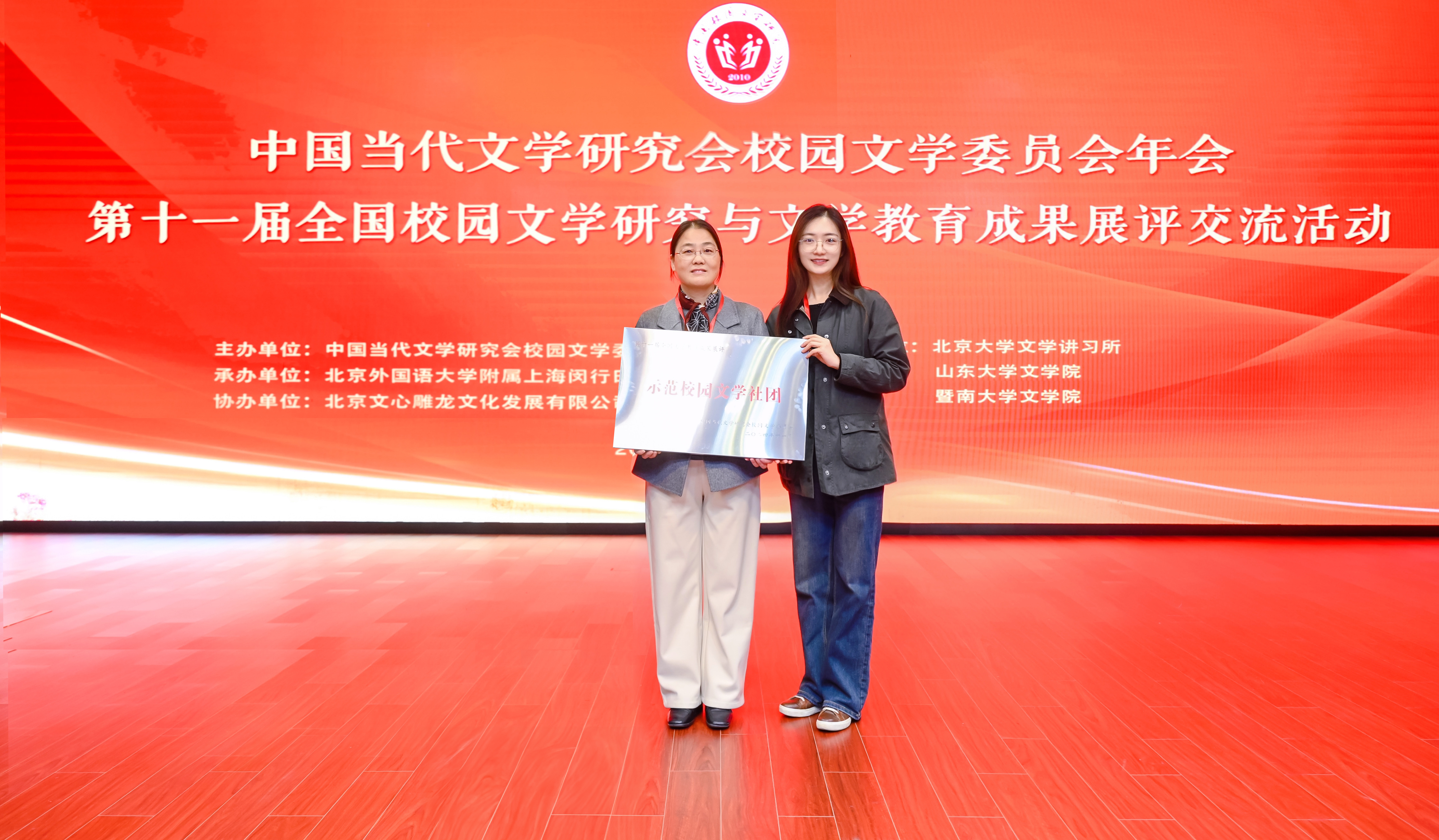 11月22-23日,第十一届全国校园文学研究与文学教育成果展评交流活动在北外附属中学上海田园高级中学成功举办。东营市一中二月文学社从全国300多所参评的大、中学校校园文学社团中脱颖而出,获评全国“示范校园文学社团”,史本泉校长为示范校园文学社团模范校长,二月文学社社长、2023级30班学生唐子淇为模范社长,胡爱萍老师为十佳校园文学社团指导教师,郑玉馨、刘雨昕两位老师获校园文学、文学教育优秀论文奖。