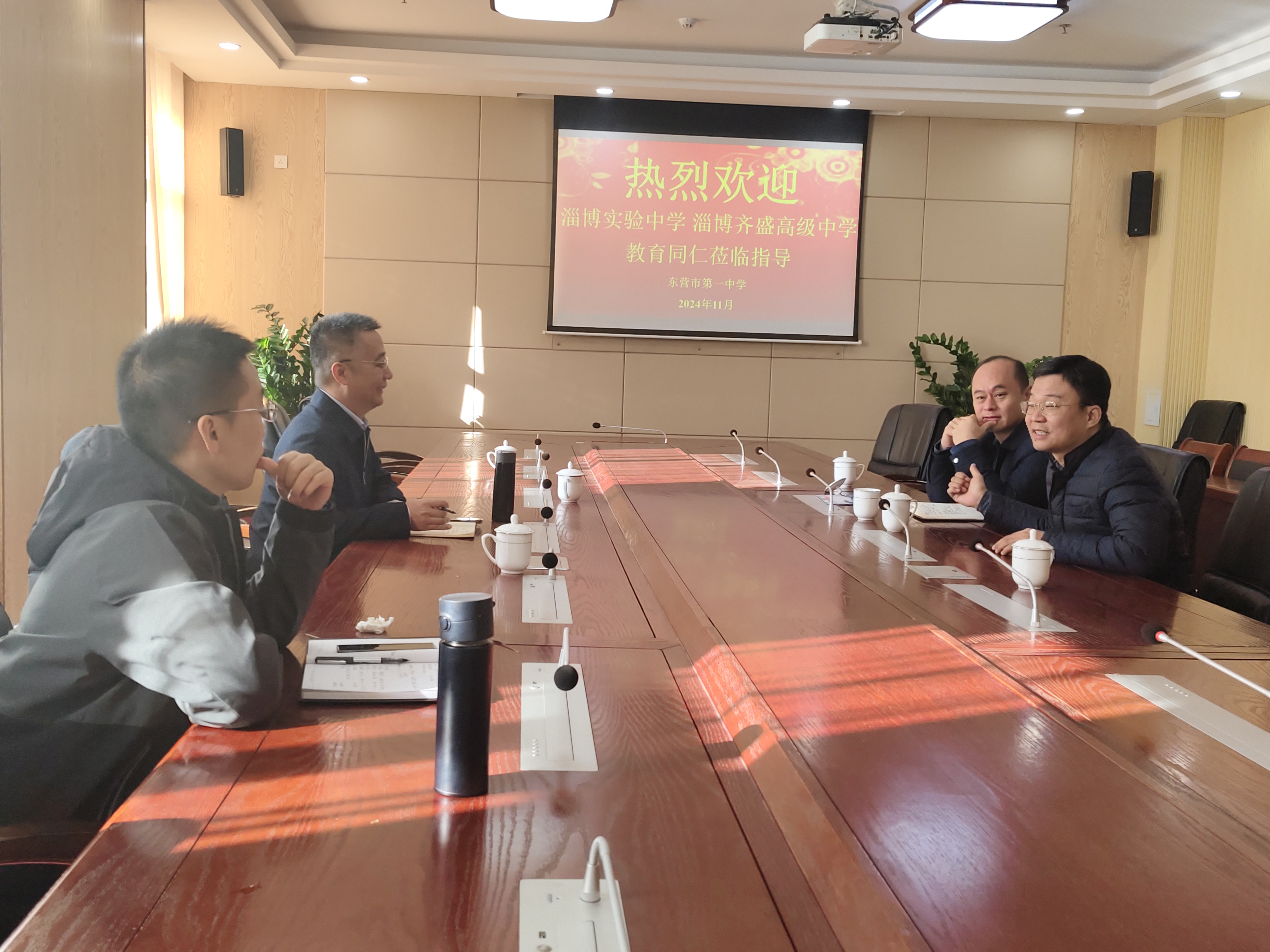 在行政楼第一会议室,李衡斌副校长向来访同仁们详细的介绍了东营的地域特色以及我校的发展历史、办学理念、师资力量、硬件设施等情况。