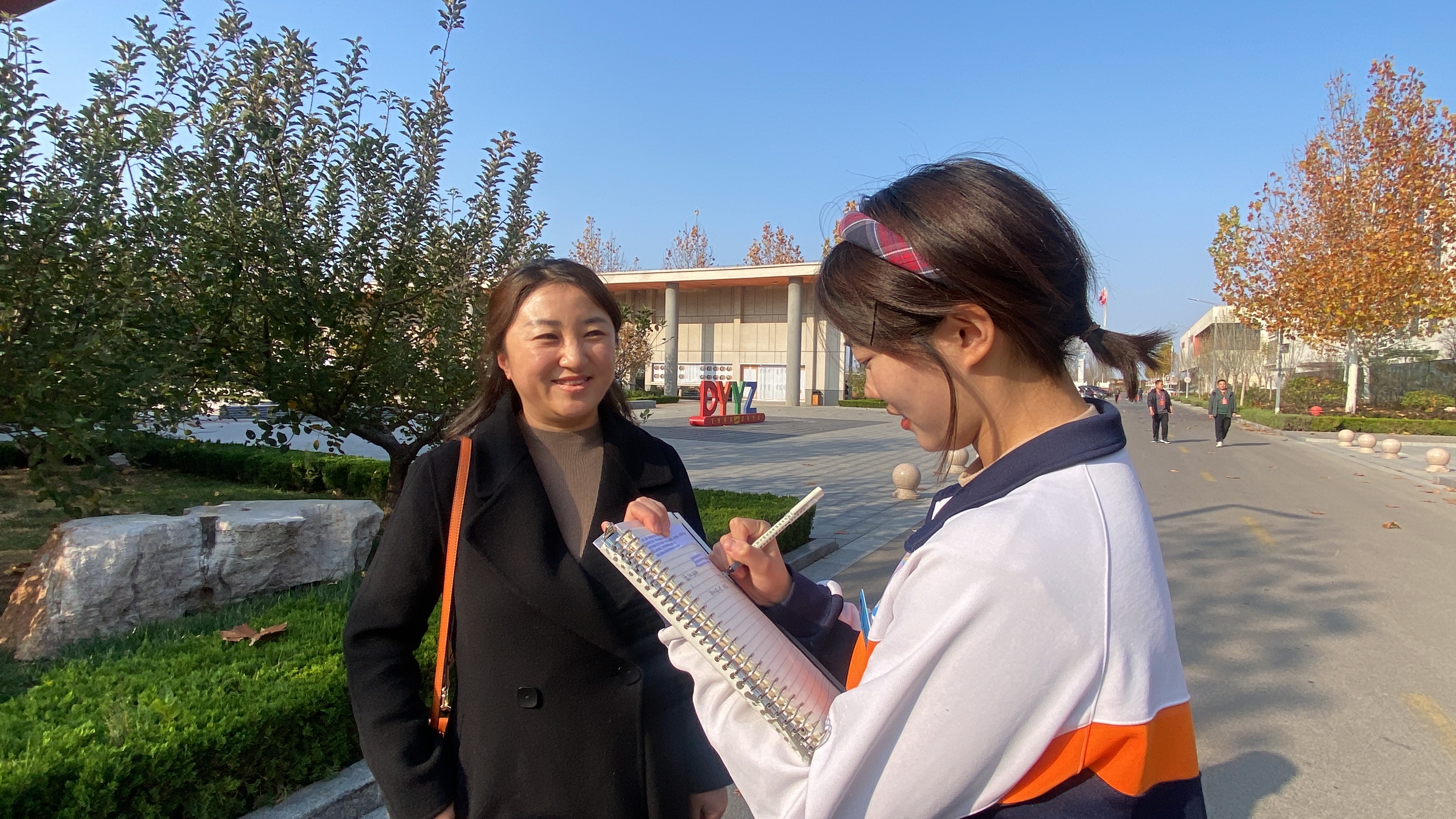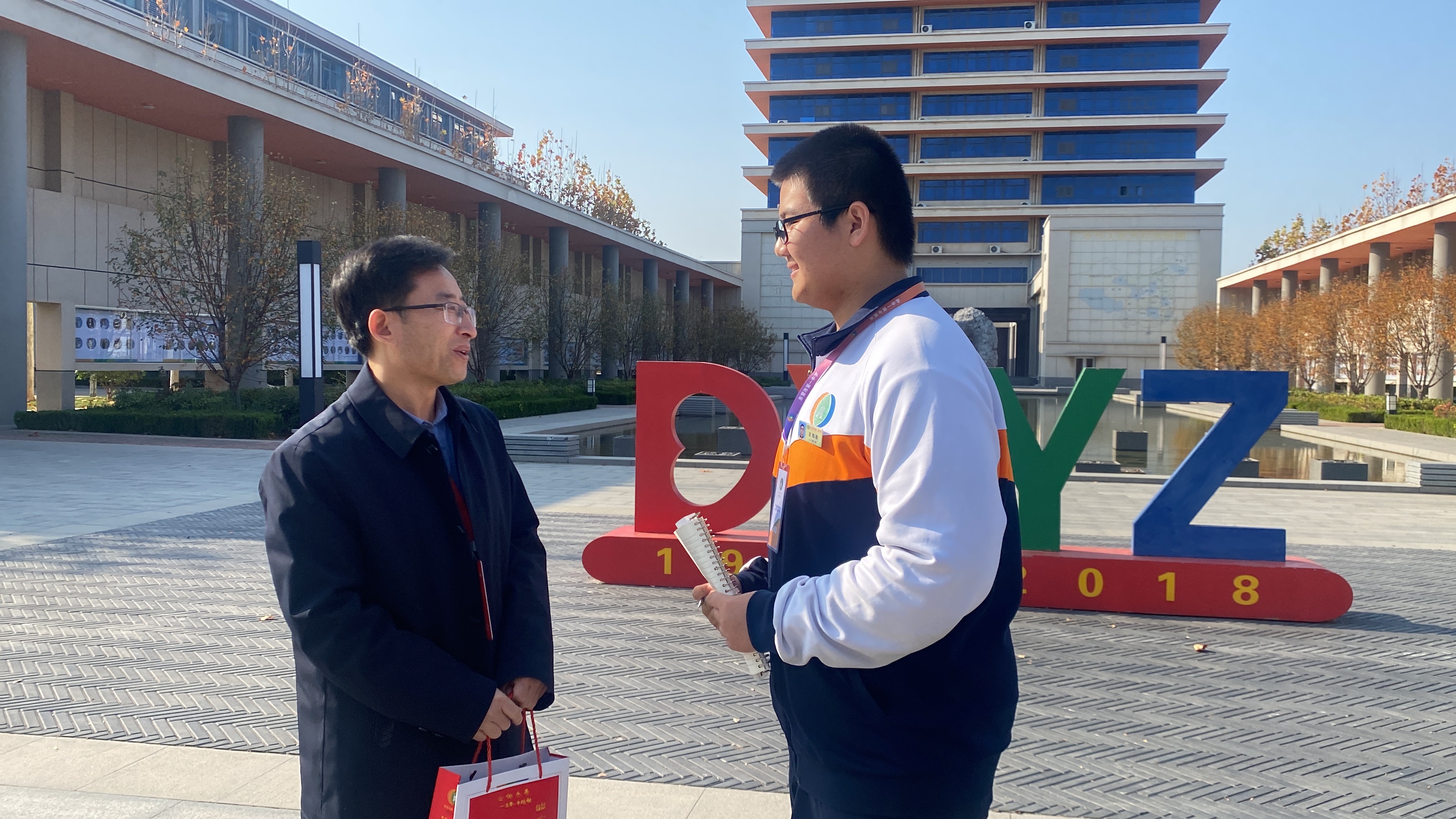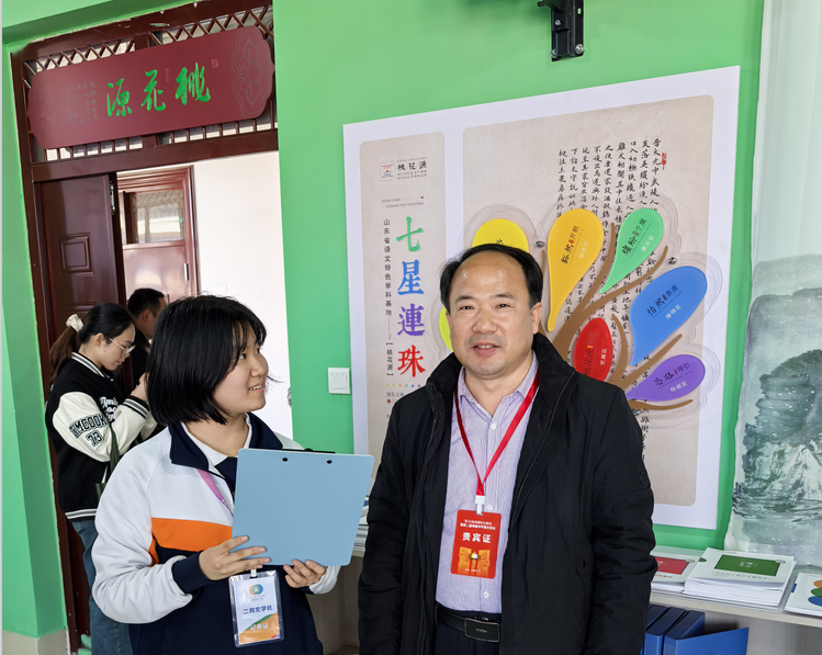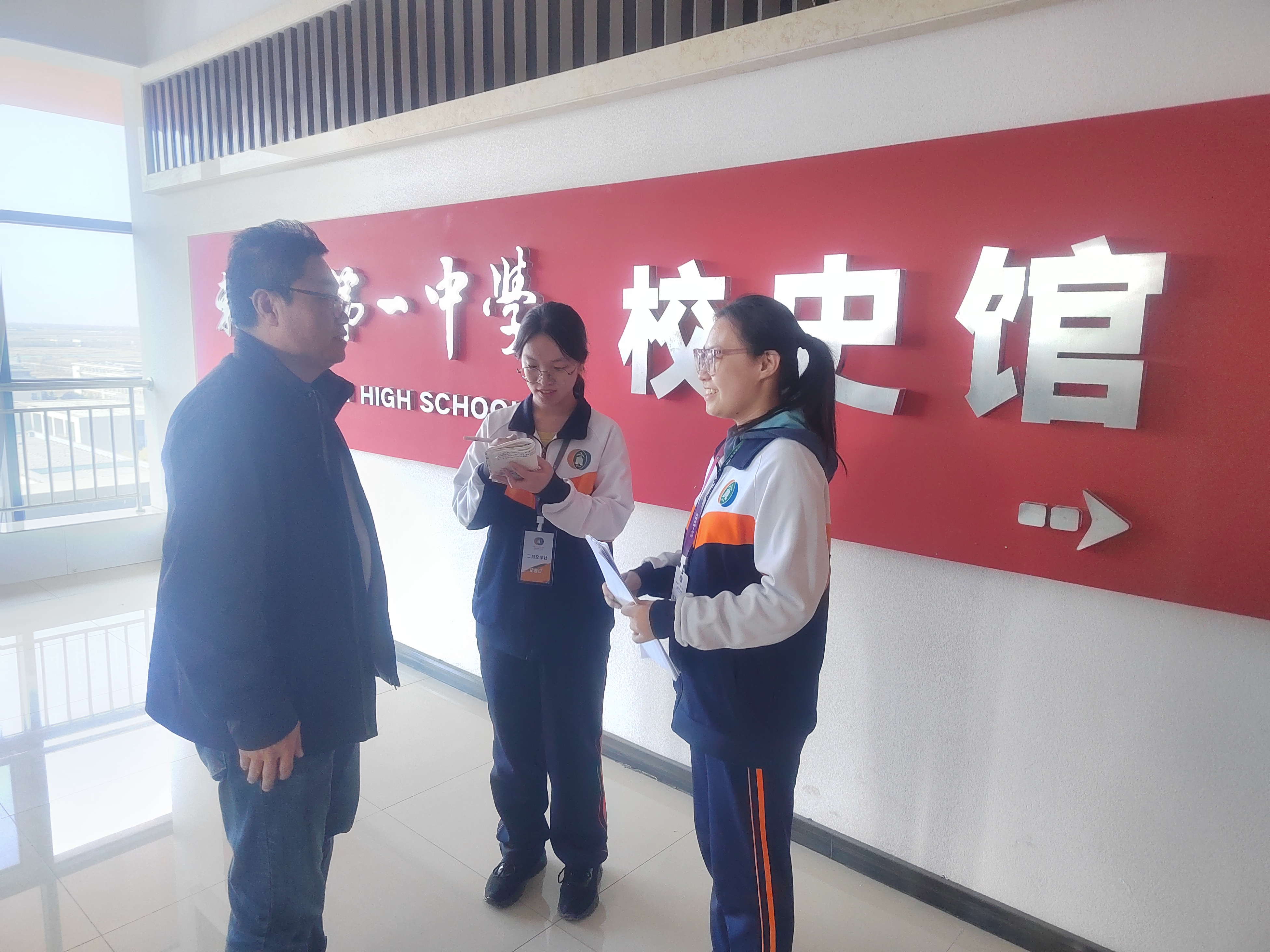在校史馆、桃花源(语文特色基地活动园地)等校园各处,一些学生在对来校嘉宾、教师进行采访。他们是市一中的学生记者,是市一中二月文学社和北辰广播站的成员。他们走进峰会,访谈专家、对话名师,展现着市一中学子的青春智慧与力量。