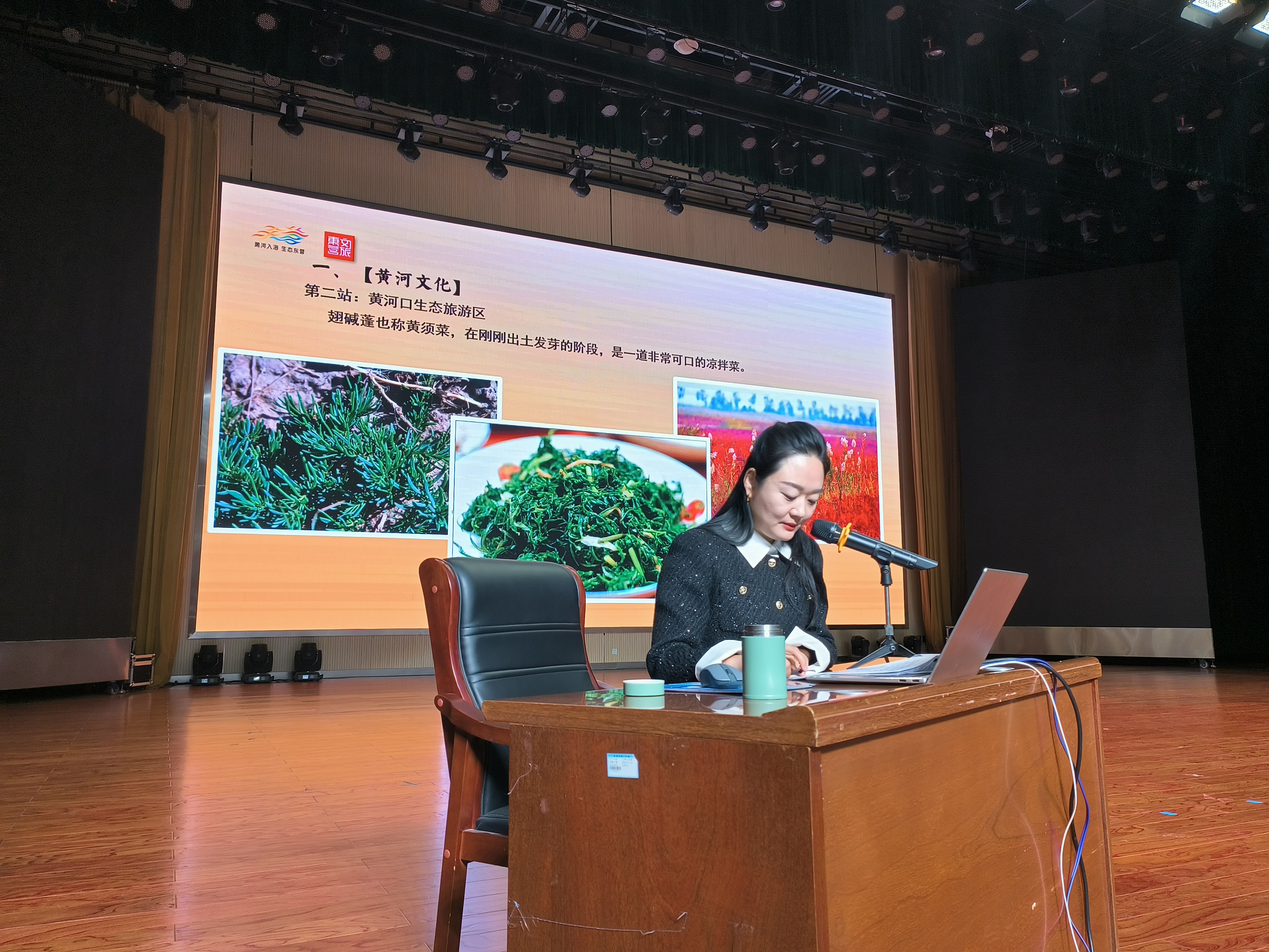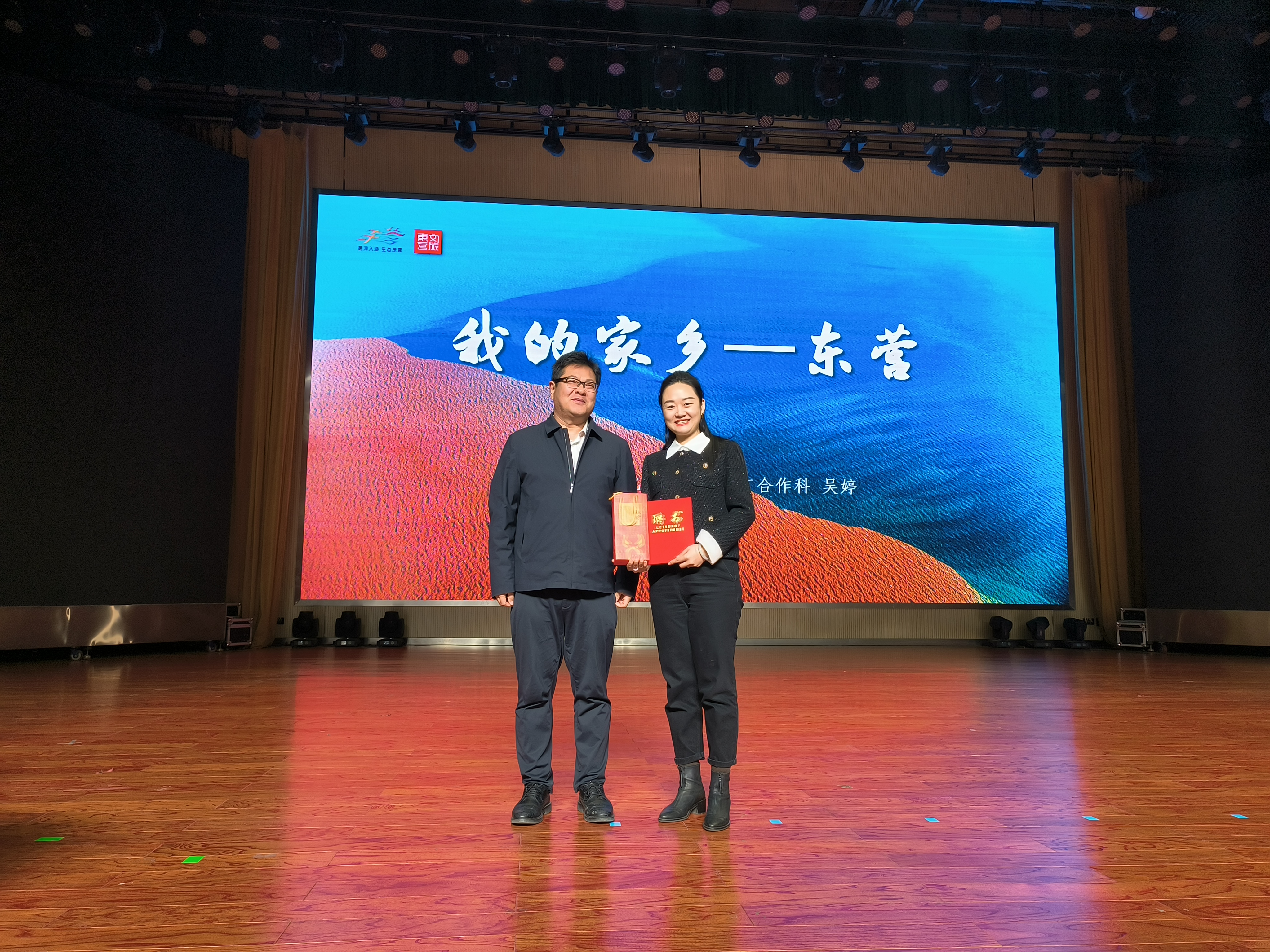 吴婷科长紧紧围绕黄河口地区的地域概念和历史背景,将黄河口文化分成黄河文化、孙子文化、红色文化、海洋文化、石油文化和非遗文化等多种文化。她在讲解过程中结合职业特点,通过图文并茂的课件和具体可感的视频对黄河口文化进行深入浅出地讲解,并且旁征博引,通过引人入胜的民俗故事和丰富鲜活的案例将黄河口的文化面向淋漓尽致地展现在听众眼前,为全体师生奉献了一场视听盛宴。会后,李衡斌副校长为吴婷科长颁受省级语文学科基地黄河口文化课程指导教师聘书。.jpg)