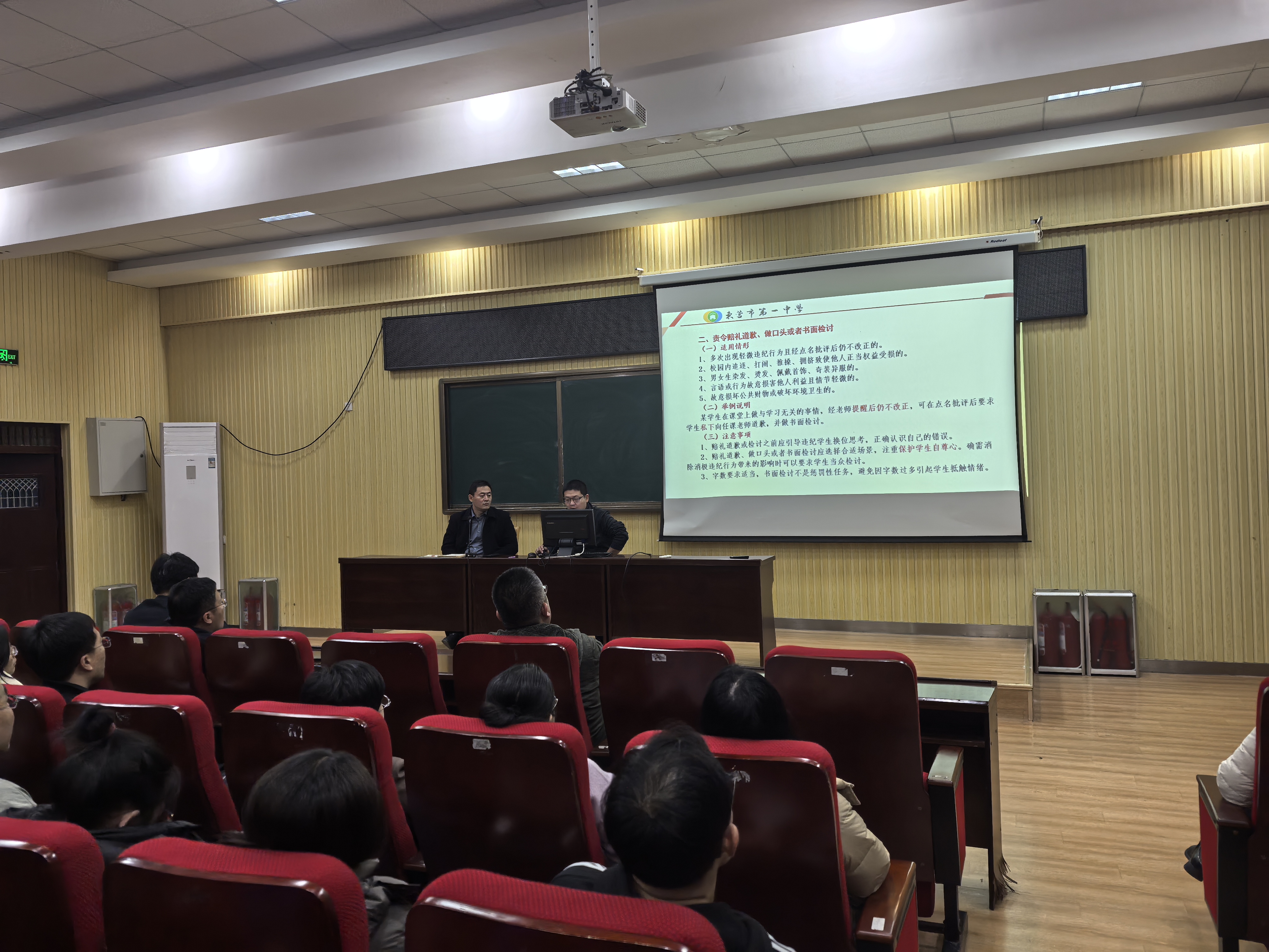 会上,德育主任孟磊领读了《东营市第一中学教育惩戒措施使用规范》,关注德育管理,着力提升育人成效;姚继亮主任总结了前半学期学生们在学习、纪律及活动等方面的表现,同时也指出了存在的问题与不足,要求班主任和老师们继续关注学期中段容易疲沓的问题,加强班级管理和学科教学,有度有爱,关注细节,目标引领,科学规划,引领学生继续积蓄知识力量。