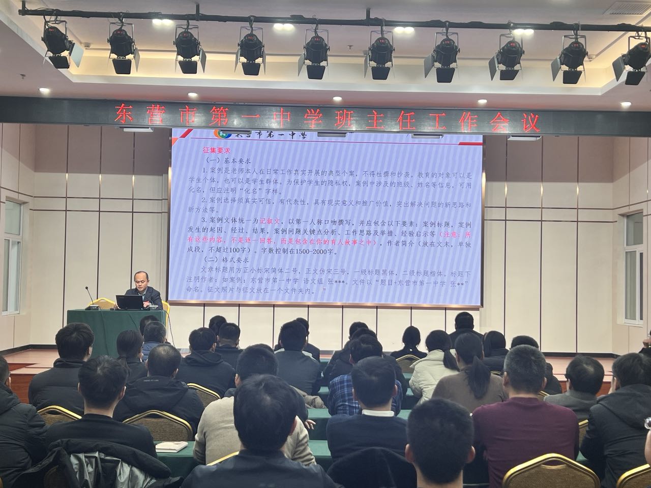 刘培友副校长以《严而有度 严而有爱》为题,围绕依法施教、特殊学生的教育管理、担当作为三个方面做了讲话。刘校长带领大家共同学习了《新时代中小学教师职业行为十项准则》和《东营市第一中学教育惩戒措施使用规范》等相关学生管理制度,详细解读了准则与规范等制度的内涵,强调了教育惩戒要依法依规,做到严而有度;对特殊学生的教育转化,班主任要耐心细致,做到严而有爱;最后他希望全体班主任把有为付诸行动,把担当融入使命,做好学生成长的引路人。
