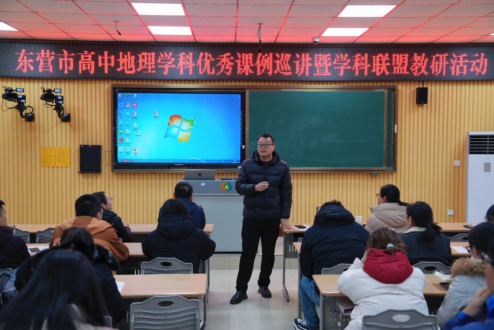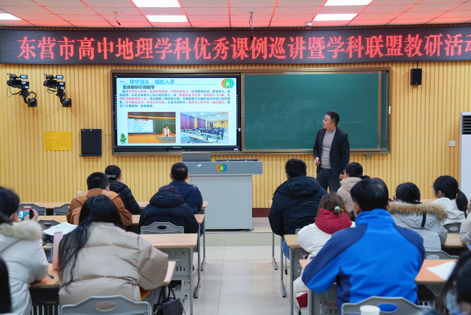 根据市教科院《关于全学段开展优秀课例巡讲活动的通知》要求和《学科教研联盟联合研训机制建设工作方案》部署,为有效发挥优秀课例示范带动作用,推进高效课堂建设,促进教学质量提高及教师专业成长,12月10日,东营市高中地理学科优秀课例巡讲暨学科联盟教研活动在我校举行。
