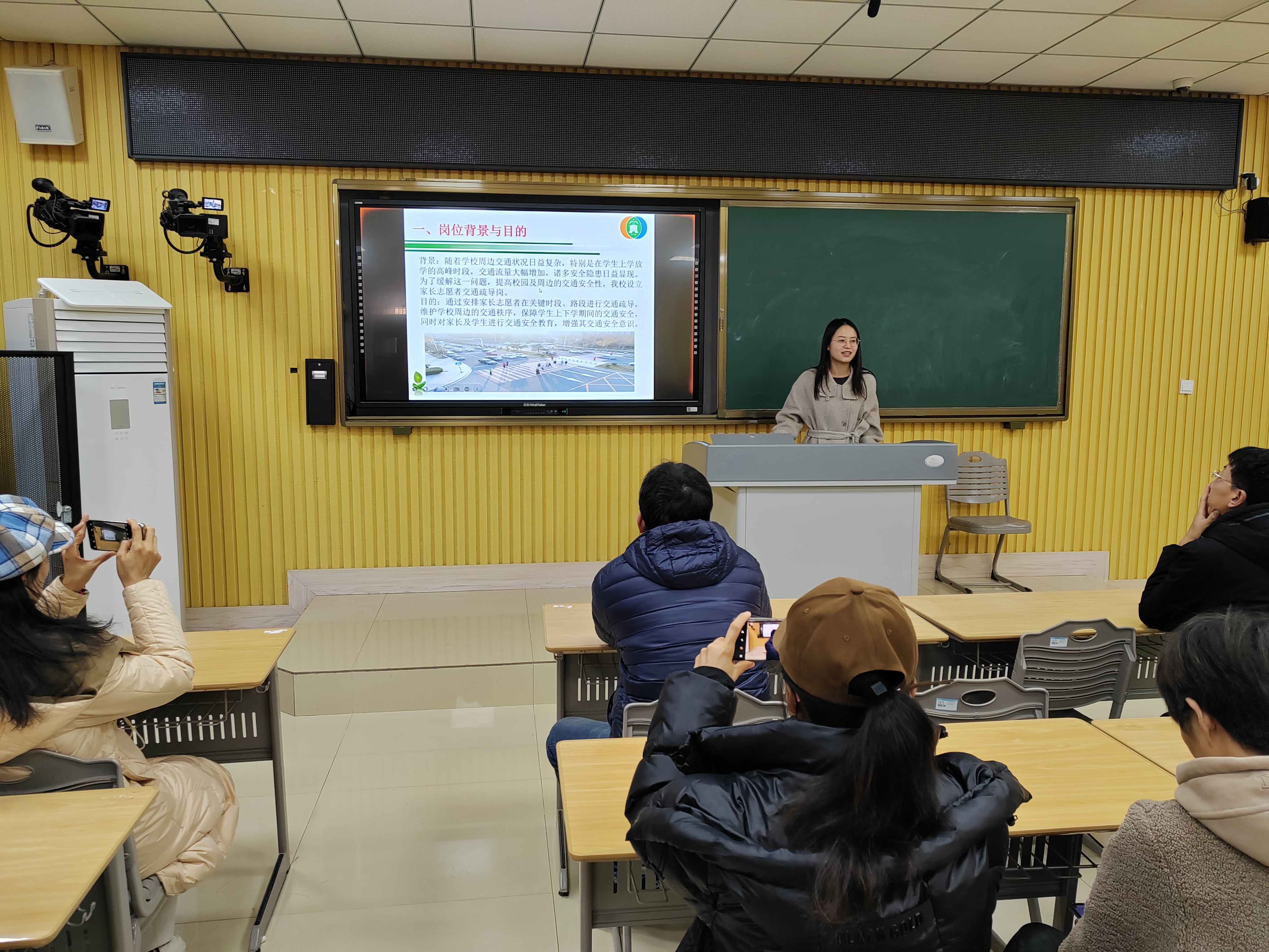 为切实保障学生上下学期间校门口的交通安全,营造有序、畅通的出行环境,12月15日下午,市一中 2023 级部精心组织了第一期交通疏导岗家长志愿者培训会。培训会由高崇老师主讲。