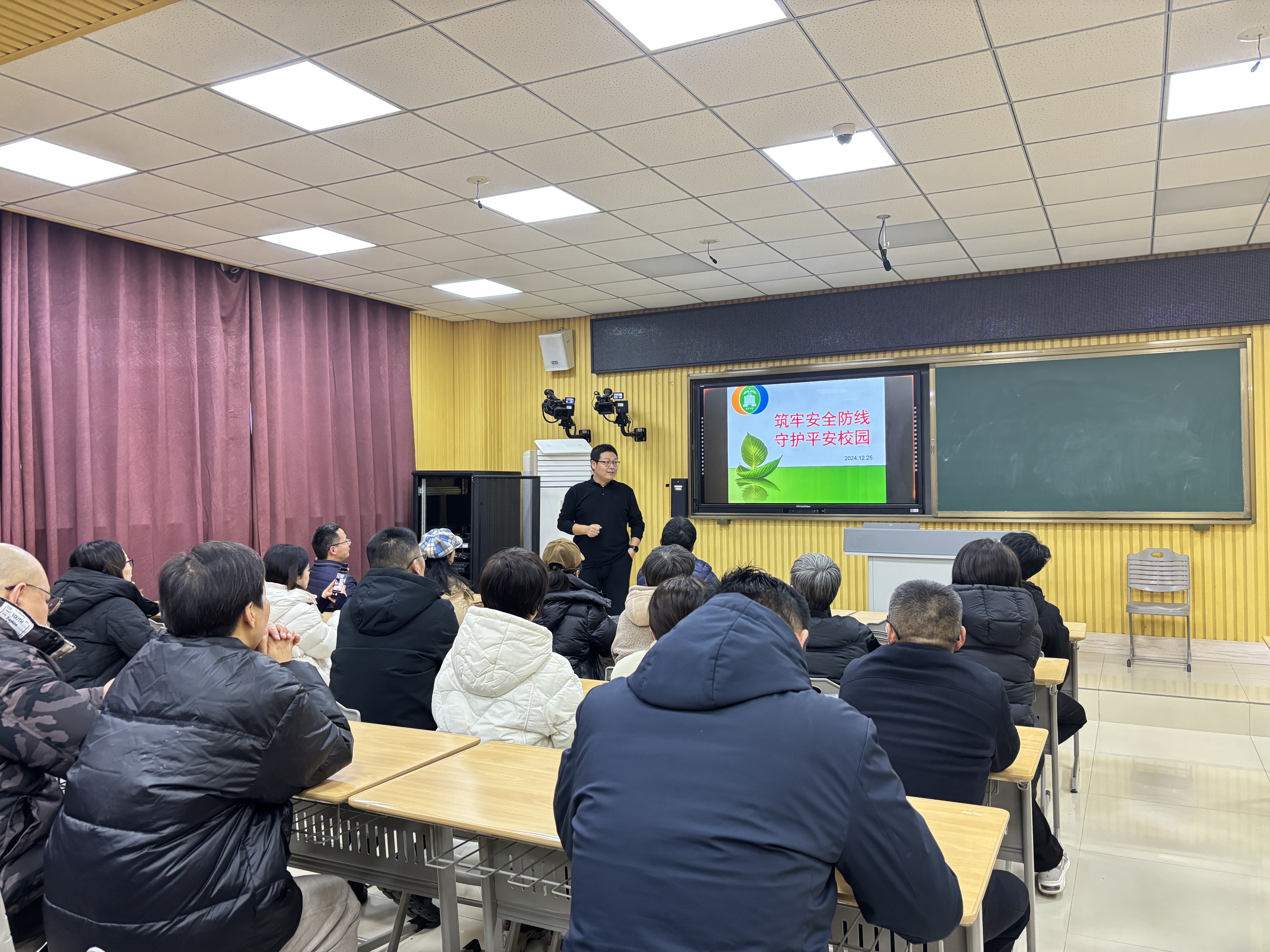 培训尾声,级部负责人孟磊主任登台发言,对家长们踊跃参与志愿服务表达诚挚谢意,同时承诺学校将全力配合志愿者工作,提供必要物资与保障。会后,家长们热情不减,围聚交流心得,不少人表示收获颇丰,已迫不及待想上岗履职,为孩子们“保驾护航”。