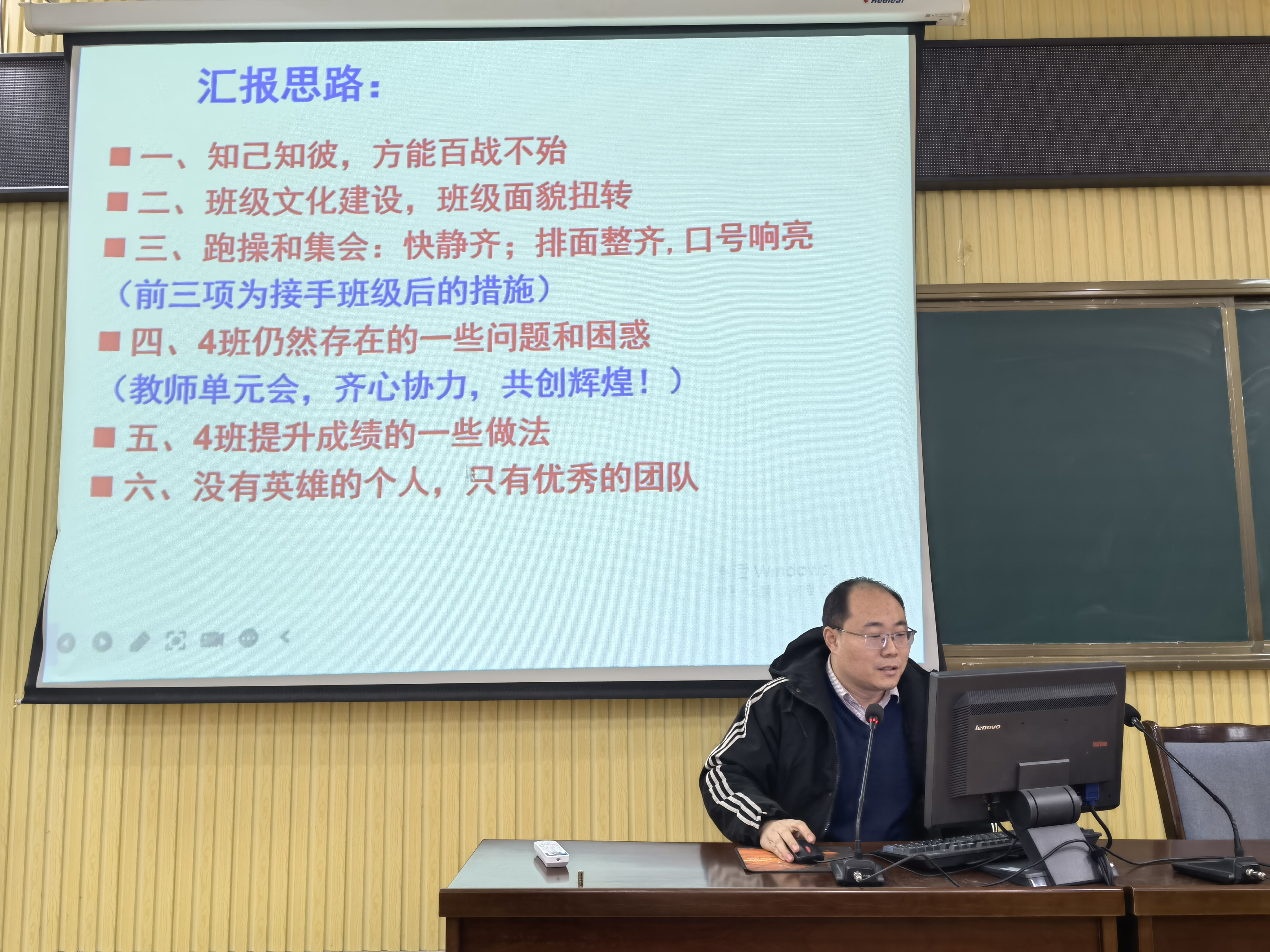 一个人可以走得很快,但一群人可以走得更远。1月17日下午,蔡龙刚老师在2022级部大会上做了题为《同心协力 共创辉煌》的工作汇报,分享了他所带领的4班团队在班级管理和成绩提升等方面的经验。