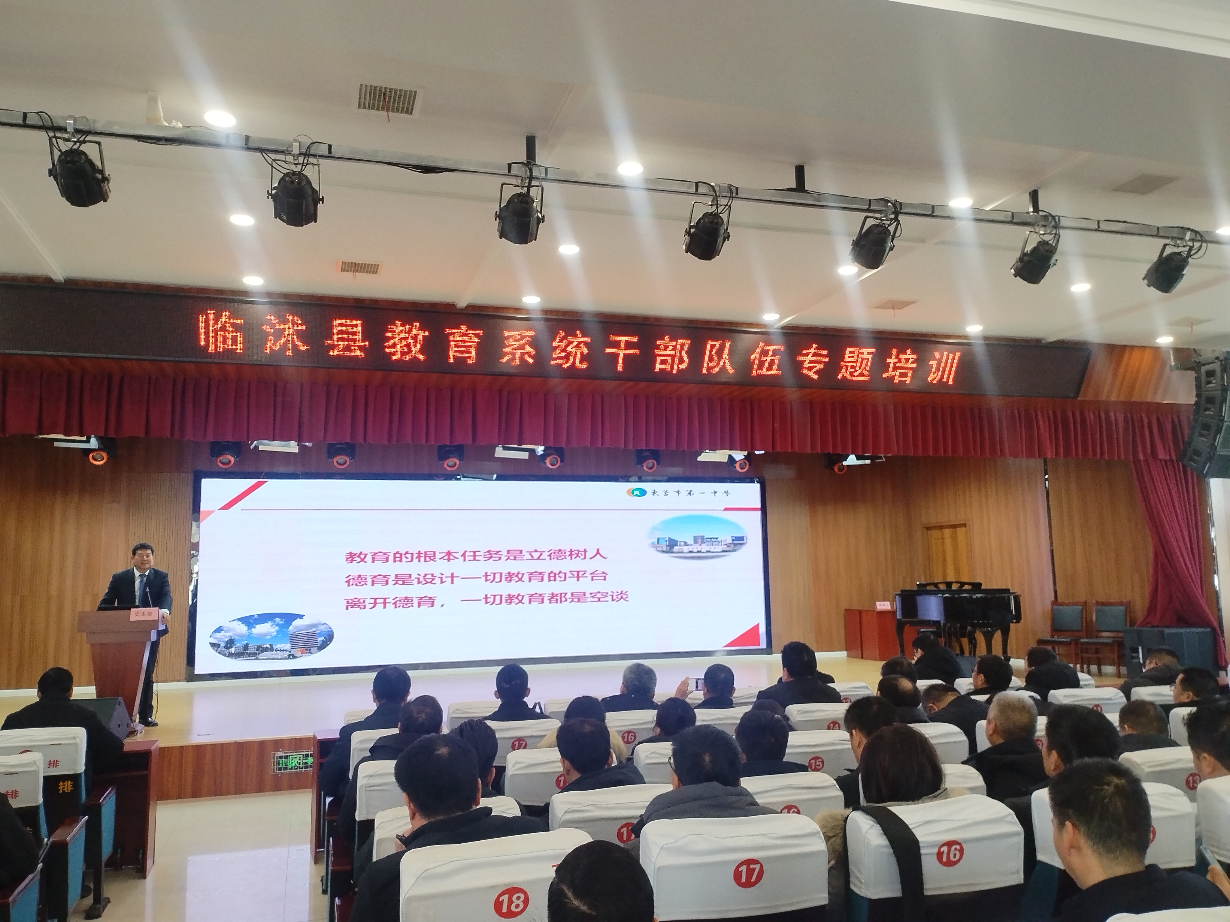 2月7日,市一中党委书记、校长史本泉应邀到临沭县,为临沭县教育系统干部队伍作校园管理专题报告。临沭县教体局副局长胡尊士主持报告会。临沭县中小学、幼儿园书记、校长及管理干部400余人聆听报告。
