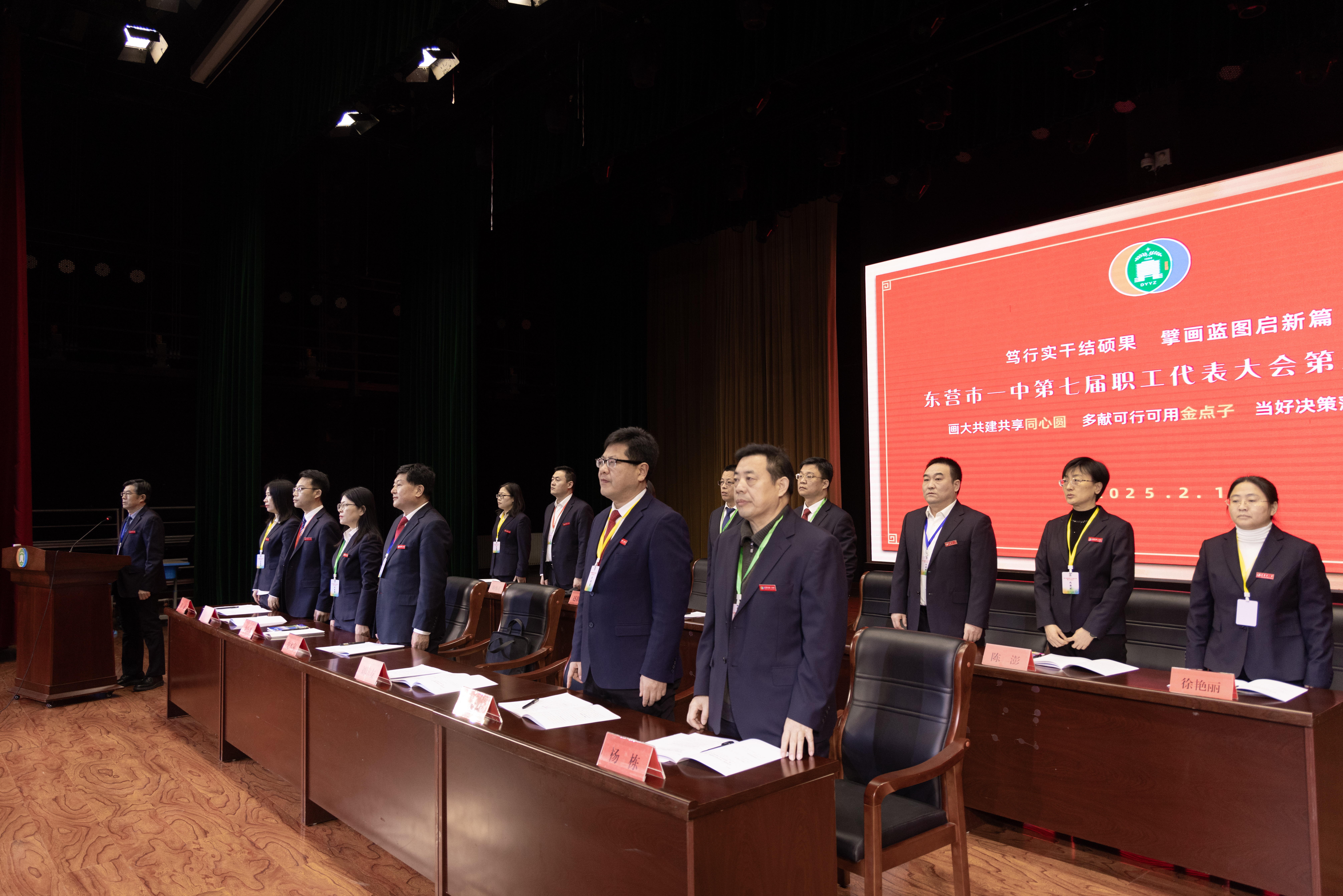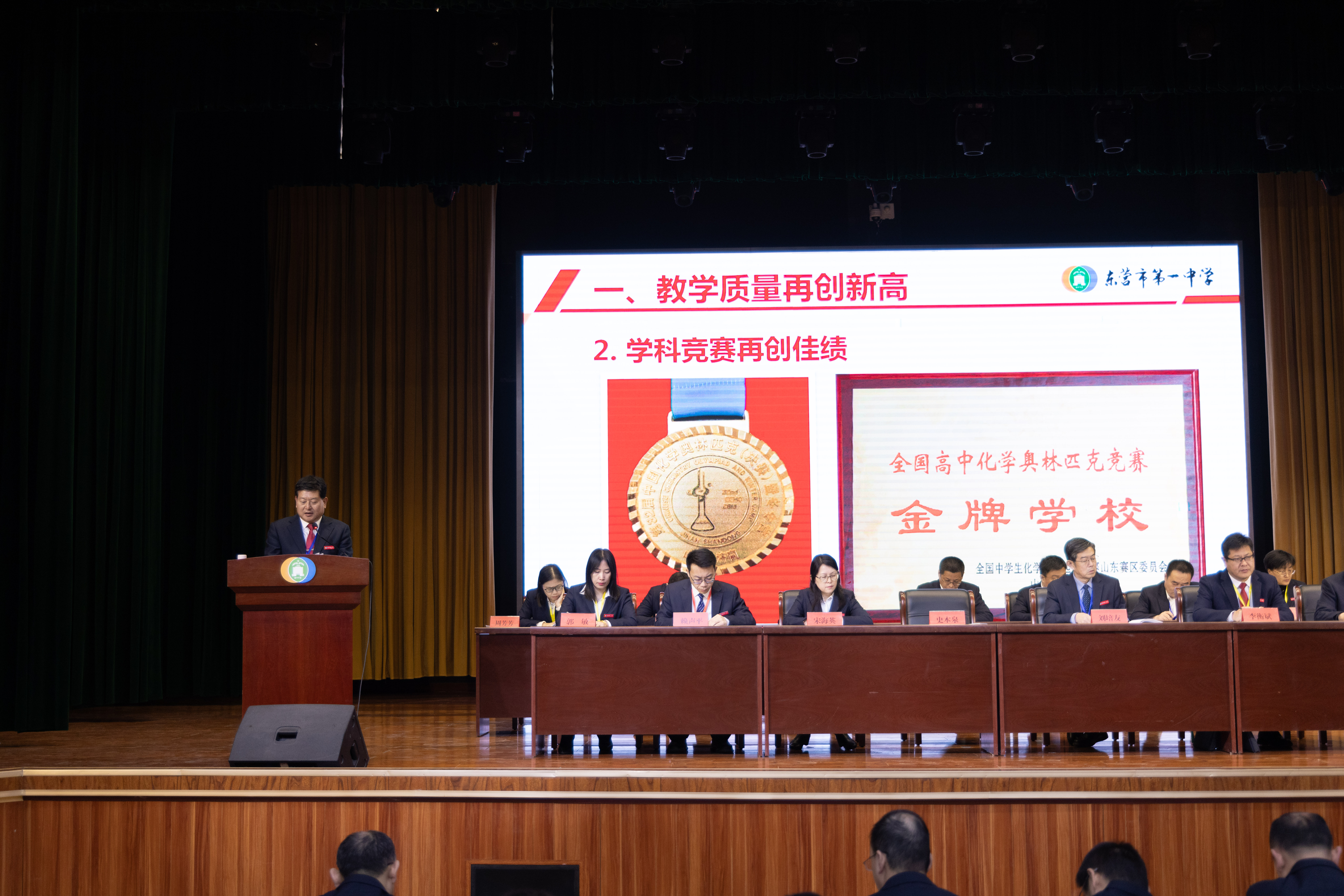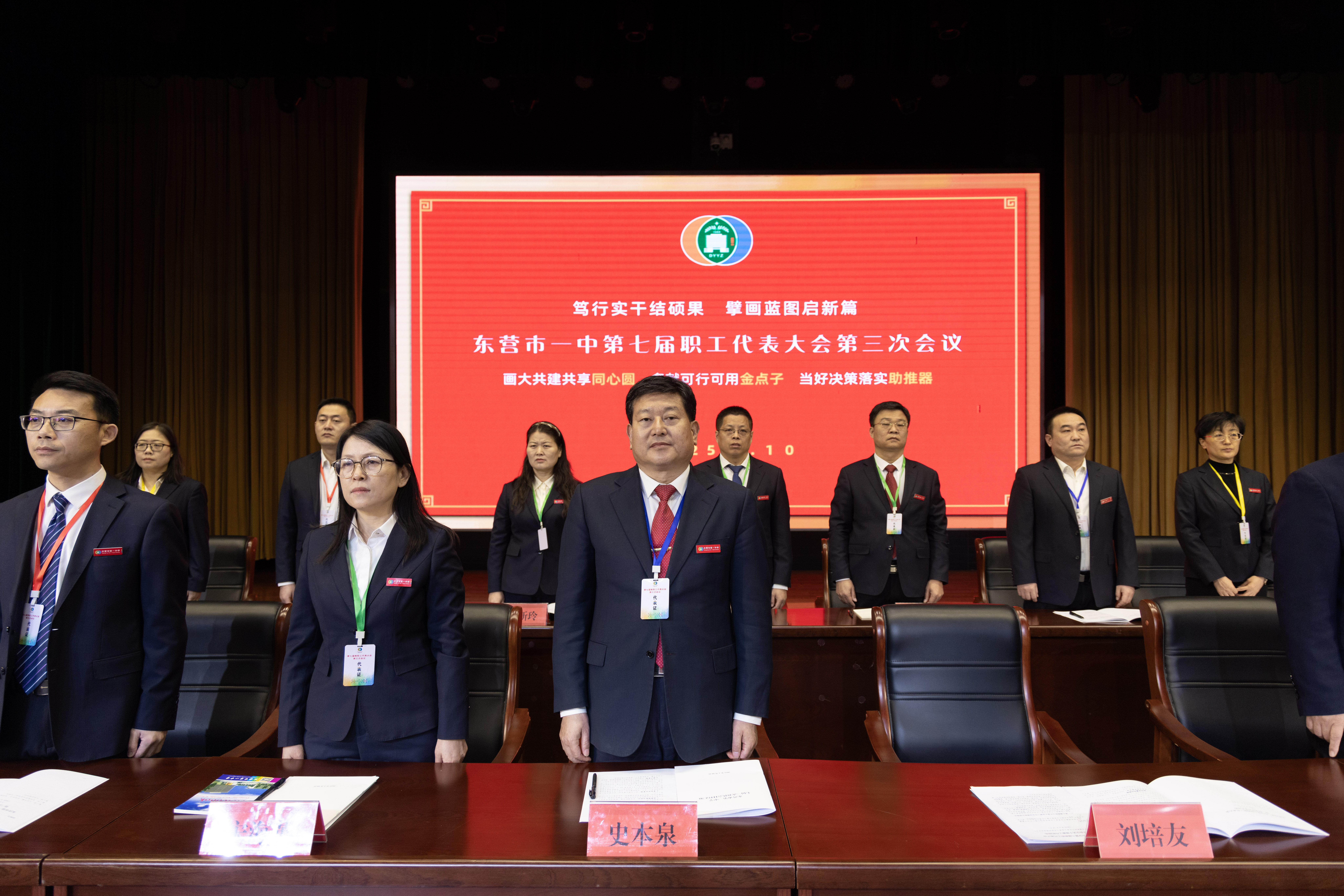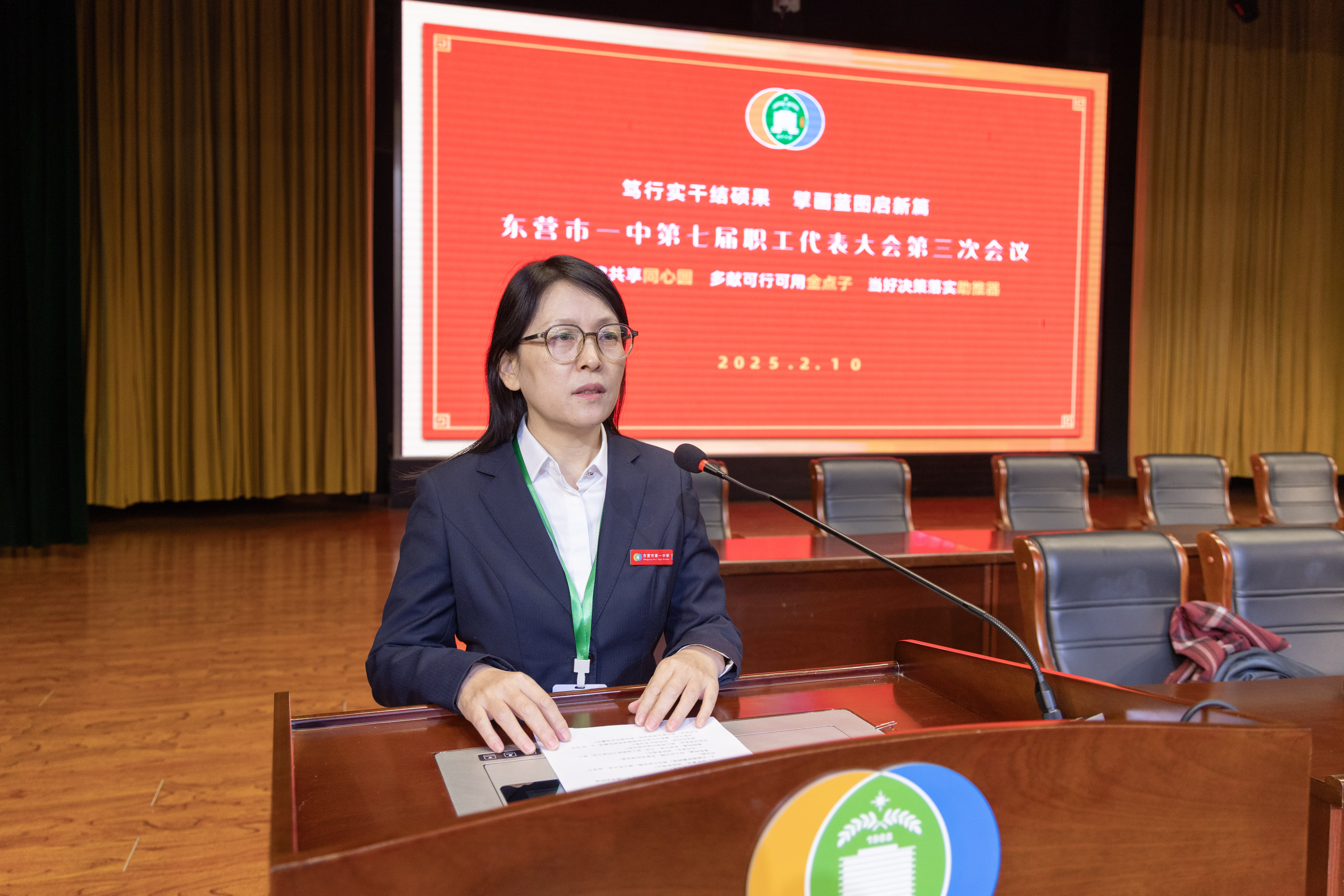 为进一步提高学校民主建设和管理水平,激发全体教职工的责任意识,提高学校决策民主化、科学化水平,凝聚学校的向心力,提质增效,加快推进学校创新发展,2月10日上午,东营市第一中学隆重召开第七届第三次教职工代表大会,全校教职工齐聚道德讲堂,共商学校发展大计。学校党委书记、校长史本泉作学校工作报告。