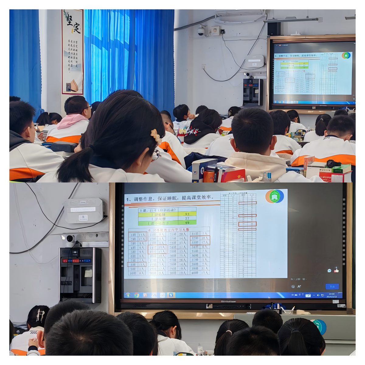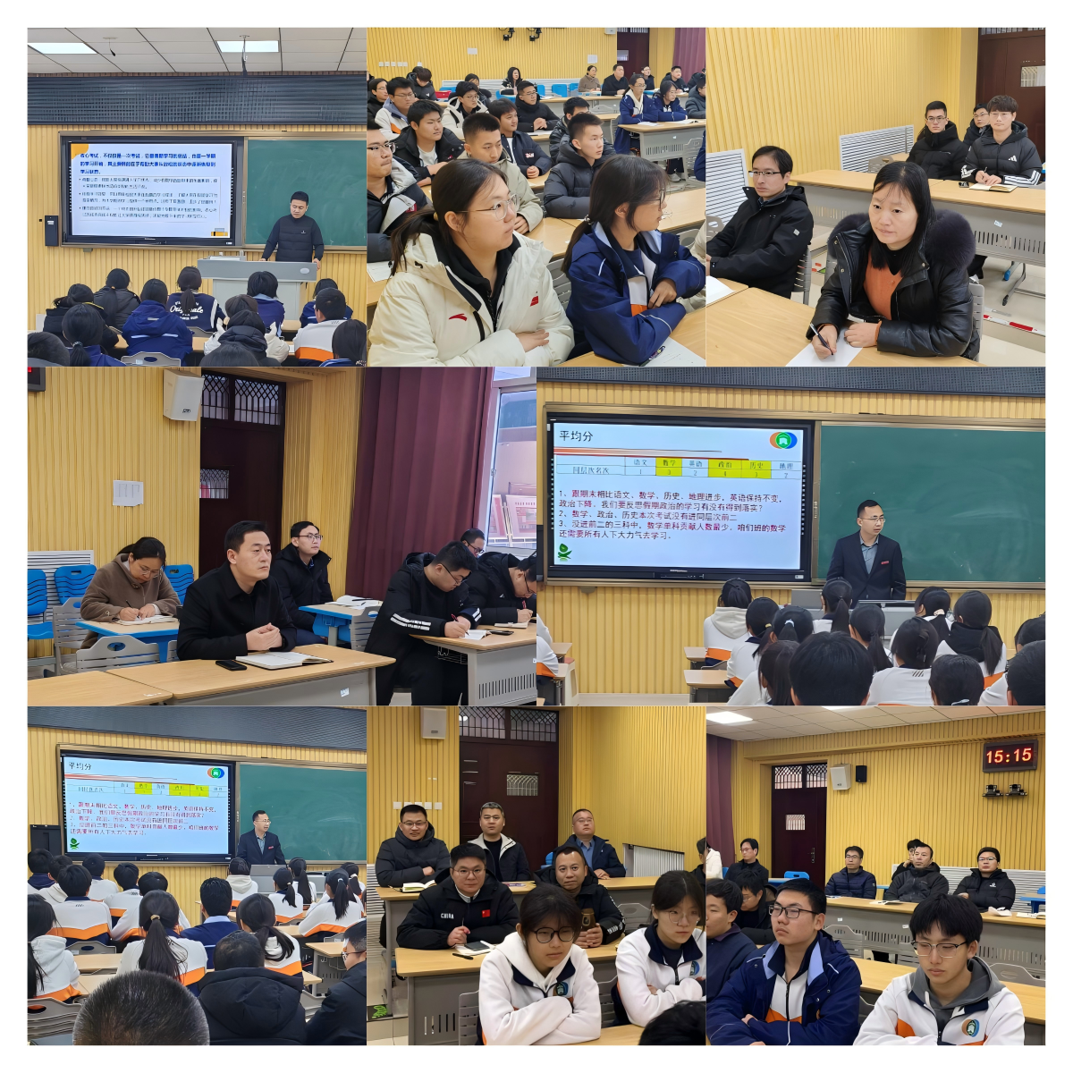 随后,2023 级全体班主任分组观摩了由李晗老师、张彬老师执教的寒假收心考试总结班会课。在班会课上,两位老师以班级整体成绩、同层次比较、进步率分析等数据为依托,精准指出班级学习中存在的问题,明确了后续努力的方向。同时,对表现优秀的学生进行表彰,树立学习榜样,激励同学们积极进取。优秀学生代表也上台分享了自己的学习方法,为同学们提供了宝贵的学习经验。
