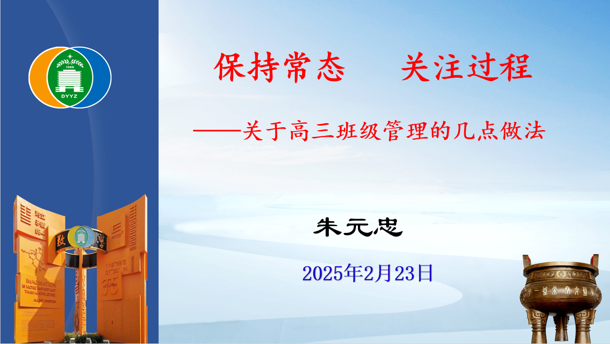 2月23日,2022级部举行班主任工作会议,朱元忠老师进行班级管理经验分享,做了题为《保持常态 关注过程》的报告。