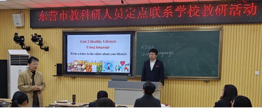 为深化新课程改革,推进核心素养落地,2月26日至28日,市教育科学研究院英语教研员崔洪兵老师莅临东营市第一中学,开展为期三天的英语教学专项视导工作。本次视导聚焦"精准把脉课堂教学,助力高考备考增效"主题,通过听评课、座谈研讨等形式,对三个年级开展全覆盖式教学指导,东营市第二中学和东营市胜利第二中学的英语教学组长们受邀参加了此次汇报会,共同探讨教学经验,有效的促进了校际交流。