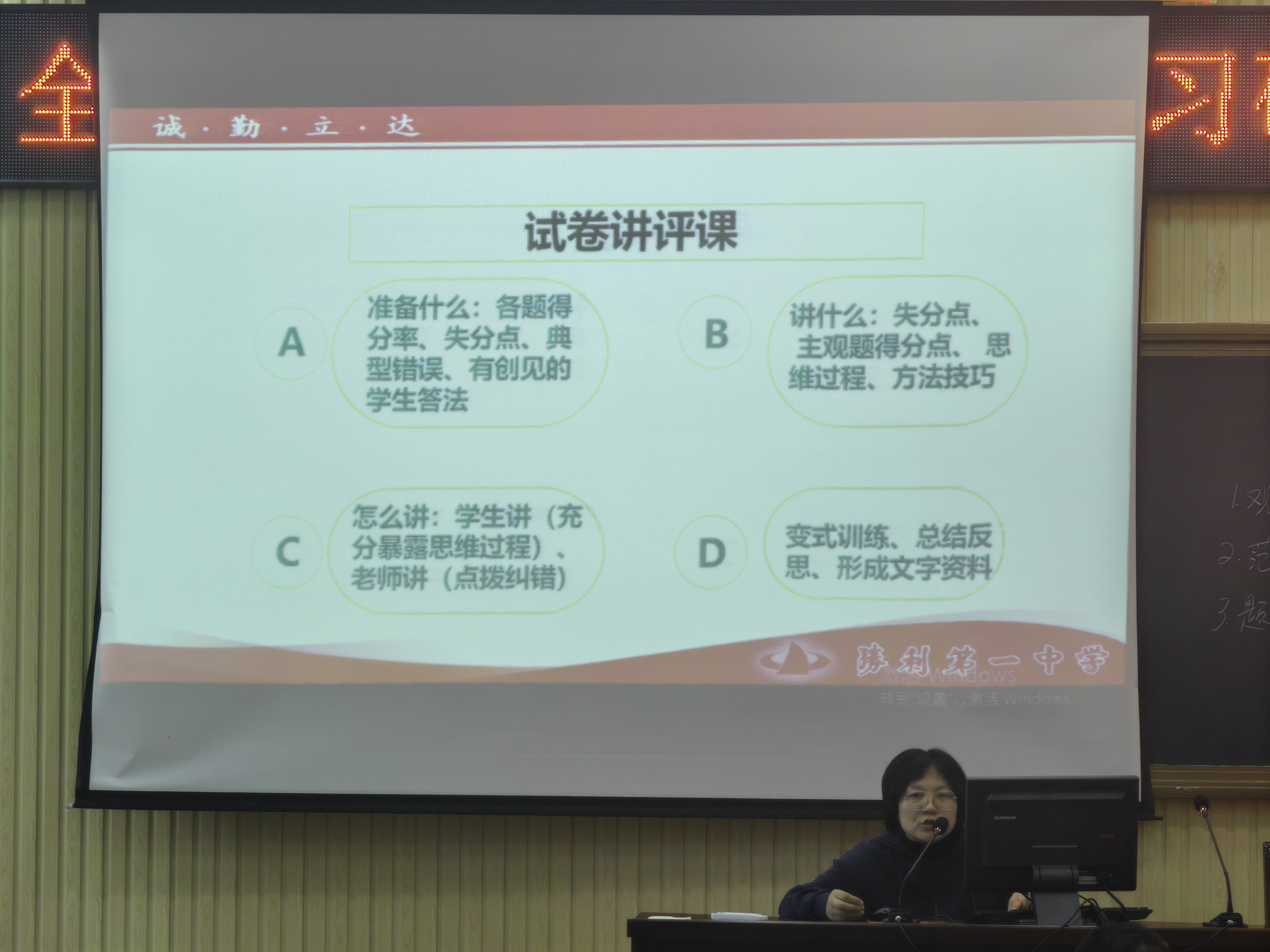 我校姜运亮老师进行了讲评课展示,对周测试卷进行了多维度分析,聚焦学生暴露的薄弱点,设计图表类、传导类、评析类三个题型突破,总结解题方法和技巧,着力提升学生破题解题能力。