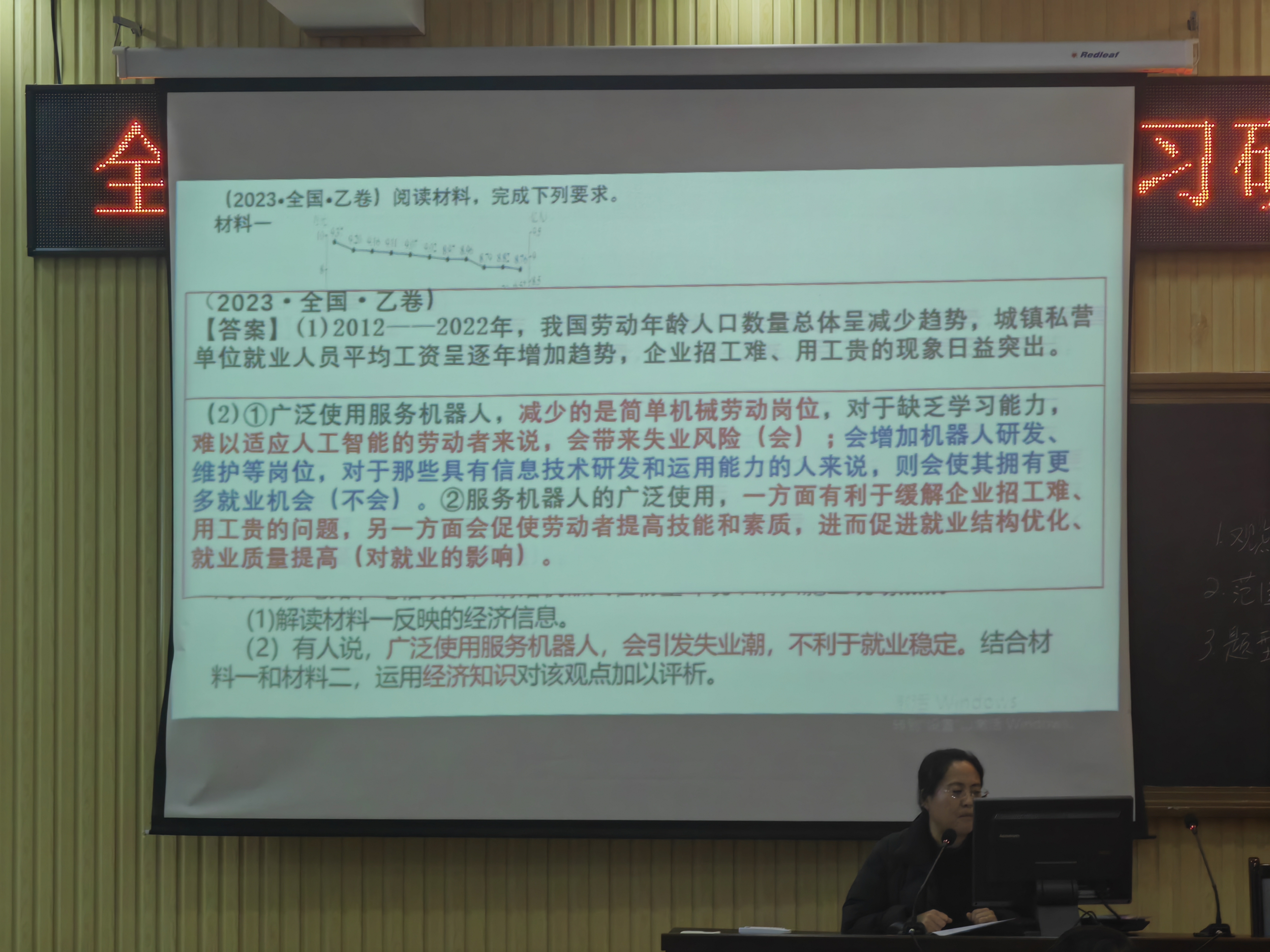 我校于洪杰老师围绕“着眼普遍性,明确复习基准点”“分析特殊性,抓好备考关键点”“坚持统一性,探寻增分突破点”三个主题,分享了高考政治二轮复习策略与实践经验。