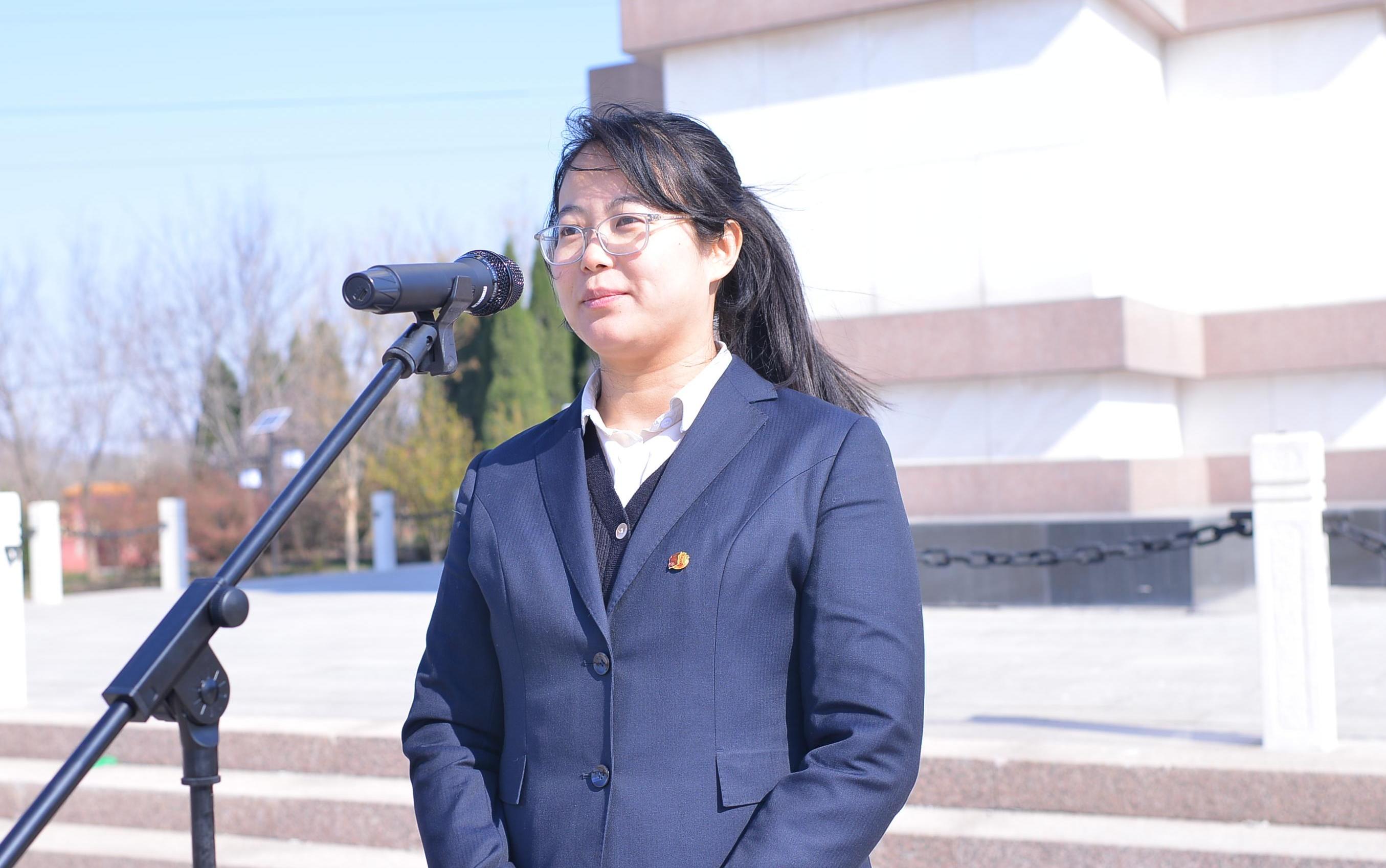 教师代表张丹童勉励同学们学习先烈精神,树立远大理想,勇担时代重任,完成先烈未竟事业。