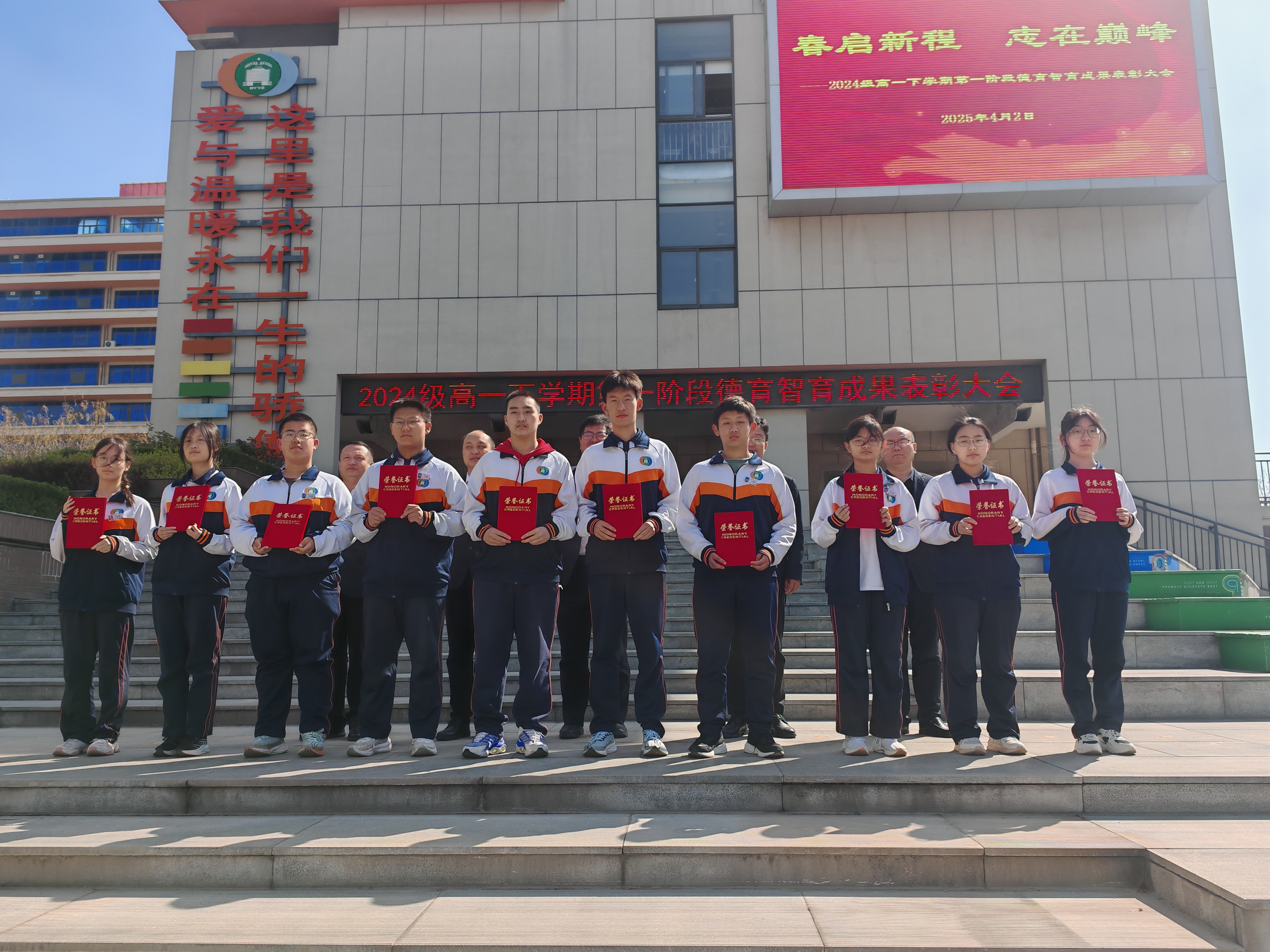 为表彰先进,树立榜样,4月2日,2024级部在升旗广场召开“春启新程,志在巅峰”暨第一阶段德育智育成果表彰大会。副校长李衡斌、教务处主任李兴民、高一年级部管理成员和所有师生参加大会,大会由高长征副主任主持。