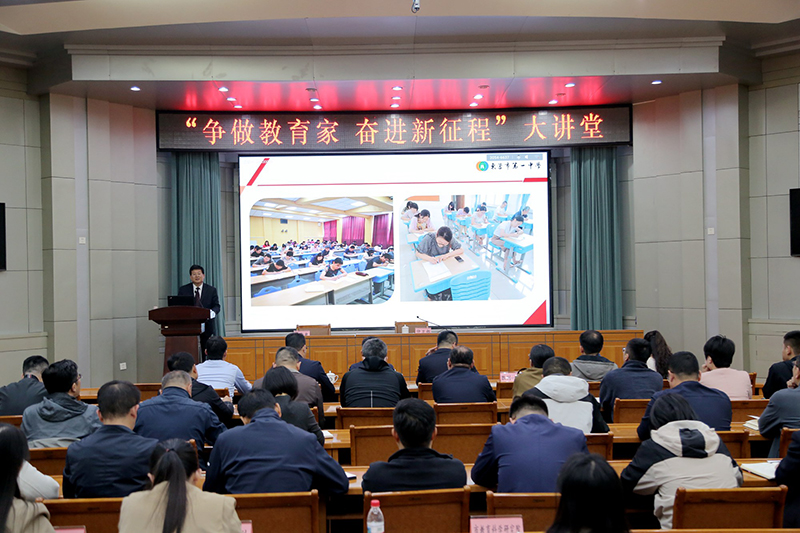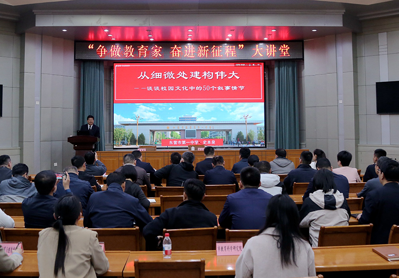 4月18日下午,“争做教育家 奋进新征程”大讲堂第三期活动顺利举办,活动邀请了全国先进工作者、齐鲁名校长、东营市第一中学党委书记、校长史本泉作报告,东营市教育局三级调研员仲卫部主持活动。