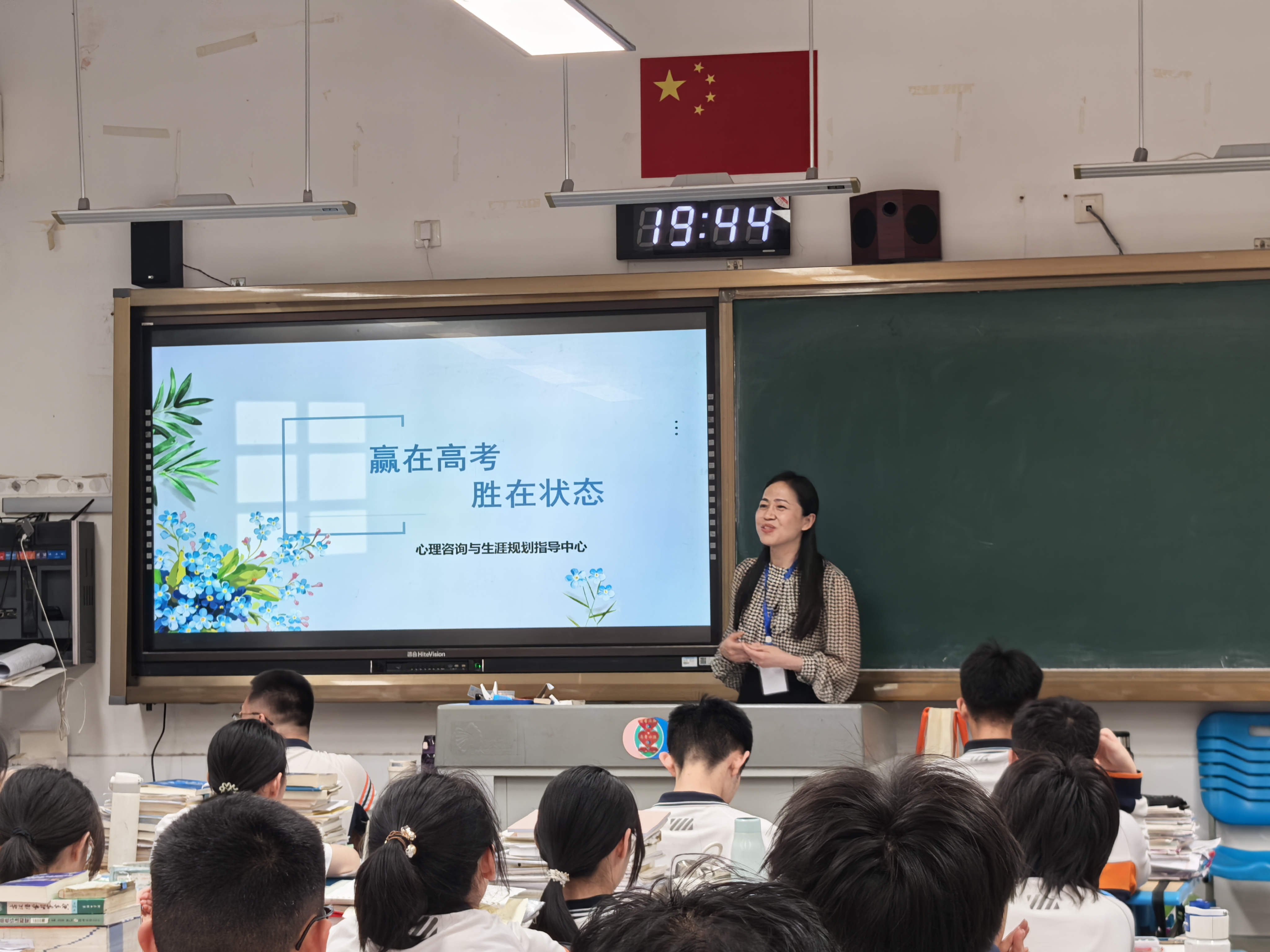 本次活动由学校心指中心统筹组织,心指中心的十几位心理咨询家长志愿者利用近三个小时的时间为高三每个班级上了一节精彩纷呈的心理调适课。